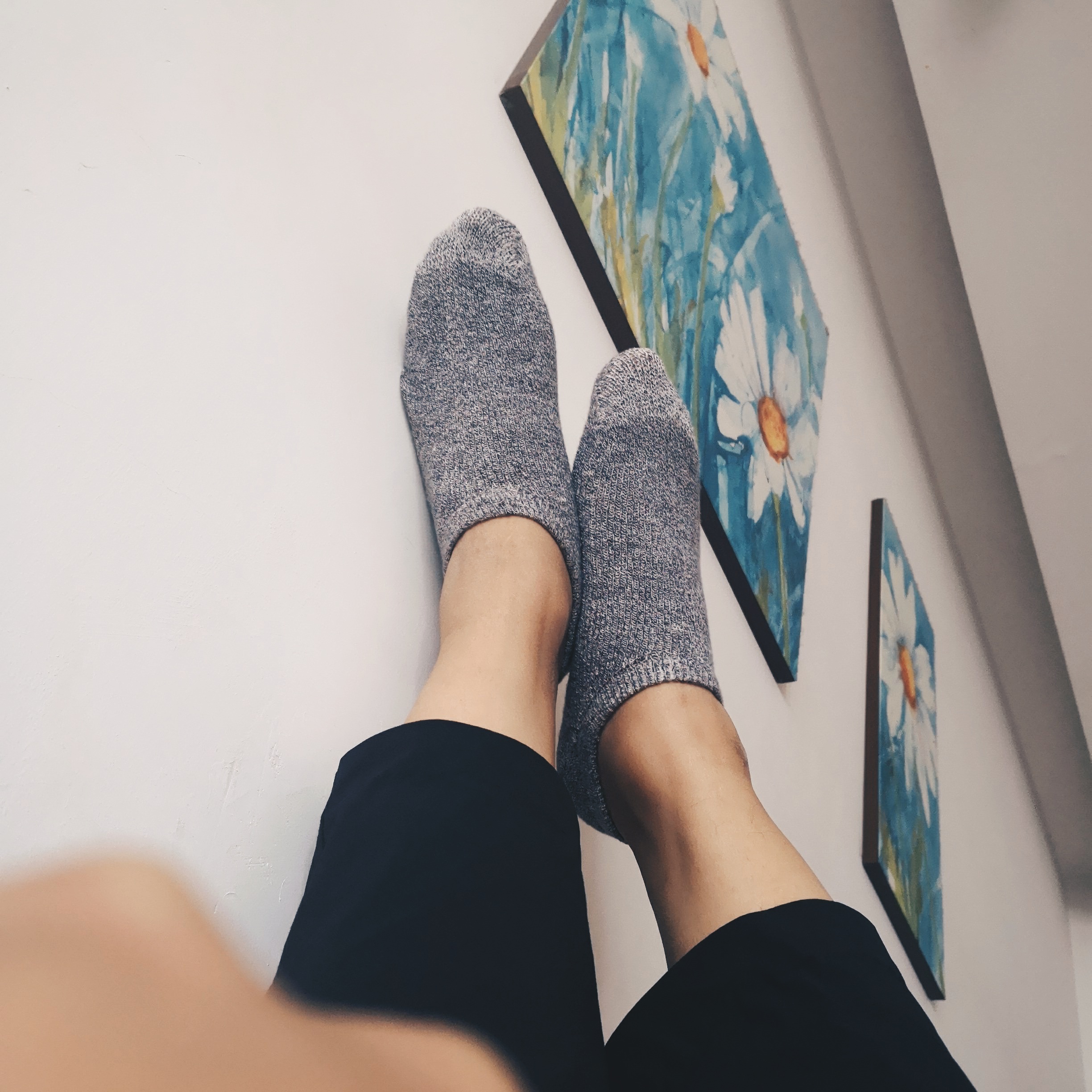 这几双有了新的技术革新,原先由踝口起头改为由袜尖织起,这样子又能将踝口高度往下降一些,收口的弹力线由一股加至两股,轻易便解决了袜子不跟脚的问题。母上大人跟我说这些的时候,显得很得意。自此,我也就不再花钱买船袜了。