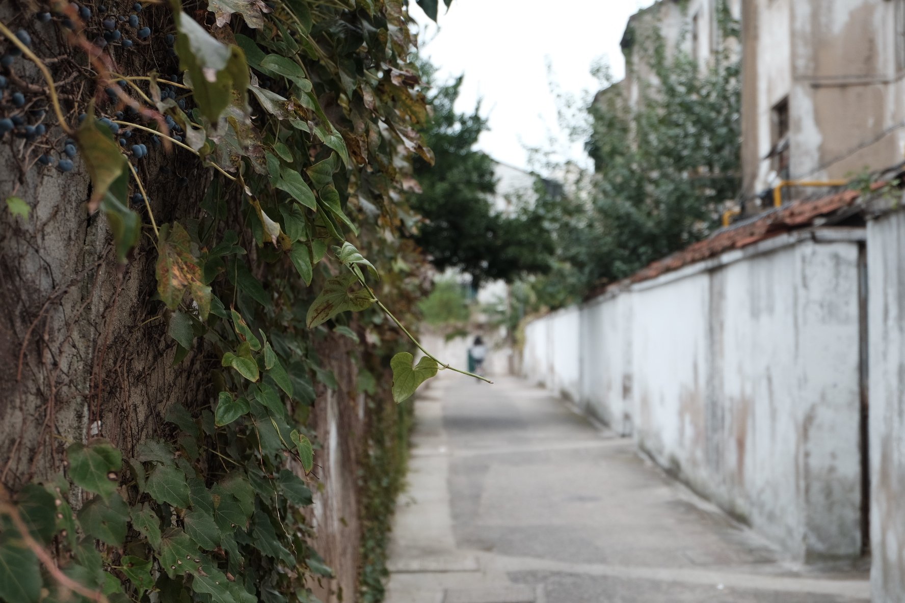 有些工房因为失修而废弃,整幢楼门窗洞开裸露出黑洞洞的虚无,偶尔有两户阳台上鲜活的生活印迹像荒漠中的绿洲一般闪亮。森森草木占据了原本人类生活的空间,脱落的墙皮、森森的浒苔、破碎的檐瓦、林立的瓦松,还有裸露出来衬在水泥板下久远年份的报纸……