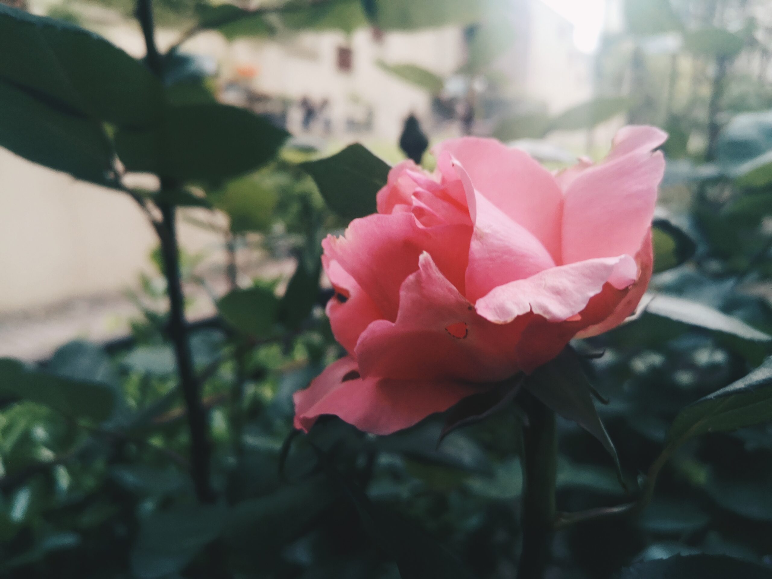 这一株多头月季是从花友手中买的苗,卖我的时候说是粉色龙沙宝石。后来我将它的照片发在朋友圈,便有其他花友提醒我“粉龙”花瓣外缘会有红色的镶边。