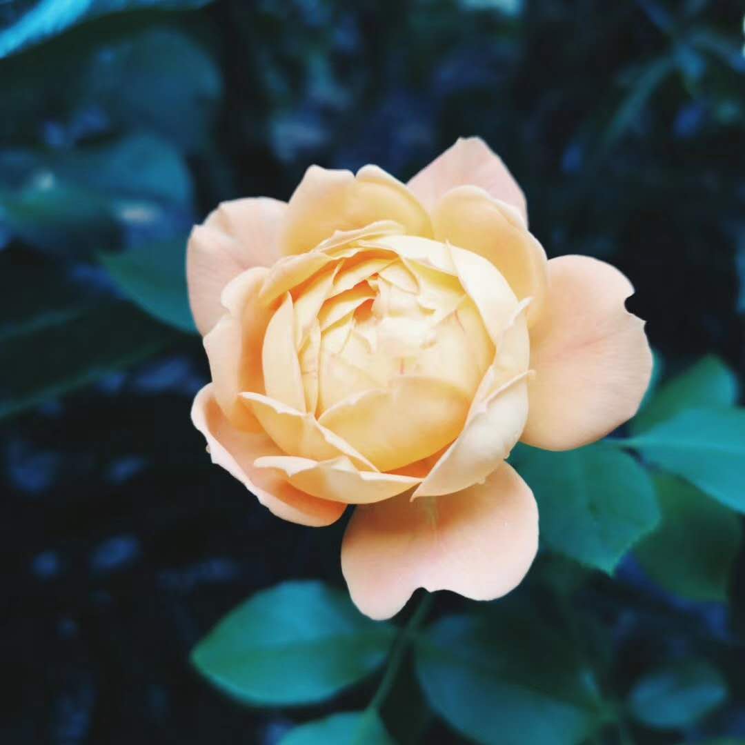 这一株是渐变色的月季,初开是这种黄不黄、橙不橙的颜色,但还算是彼此澄明,尔后在数天之中颜色越来越浓艳,花瓣开始杂色斑驳,最终性状无法用语言描述。