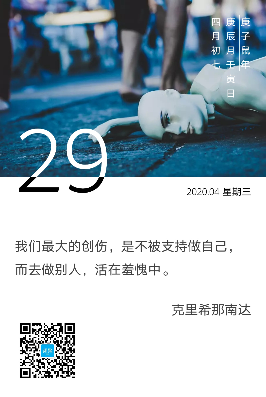 美国作家克里希那南达说,我们最大的创伤,是不被支持做自己,而去做别人,活在羞愧中。我觉得这句话应该放置在我们每个人成长过程中的某一个特定年龄阶段来看,会更有价值一些。