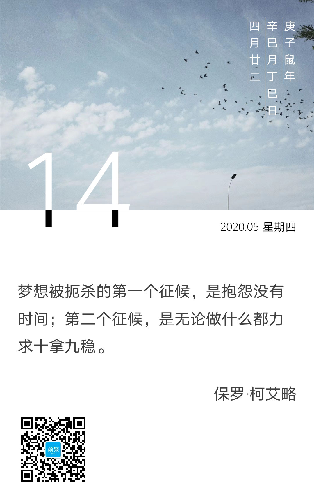 巴西作家保罗·柯艾略说,梦想被扼杀的第一征候,是抱怨没有时间;第二个征候,是无论做什么都力求十拿九稳。他为世人所熟知的作品是首版于1988年,后被翻译成70多种语言、畅销170多个国家的寓言小说《牧羊少年奇幻之旅》。
