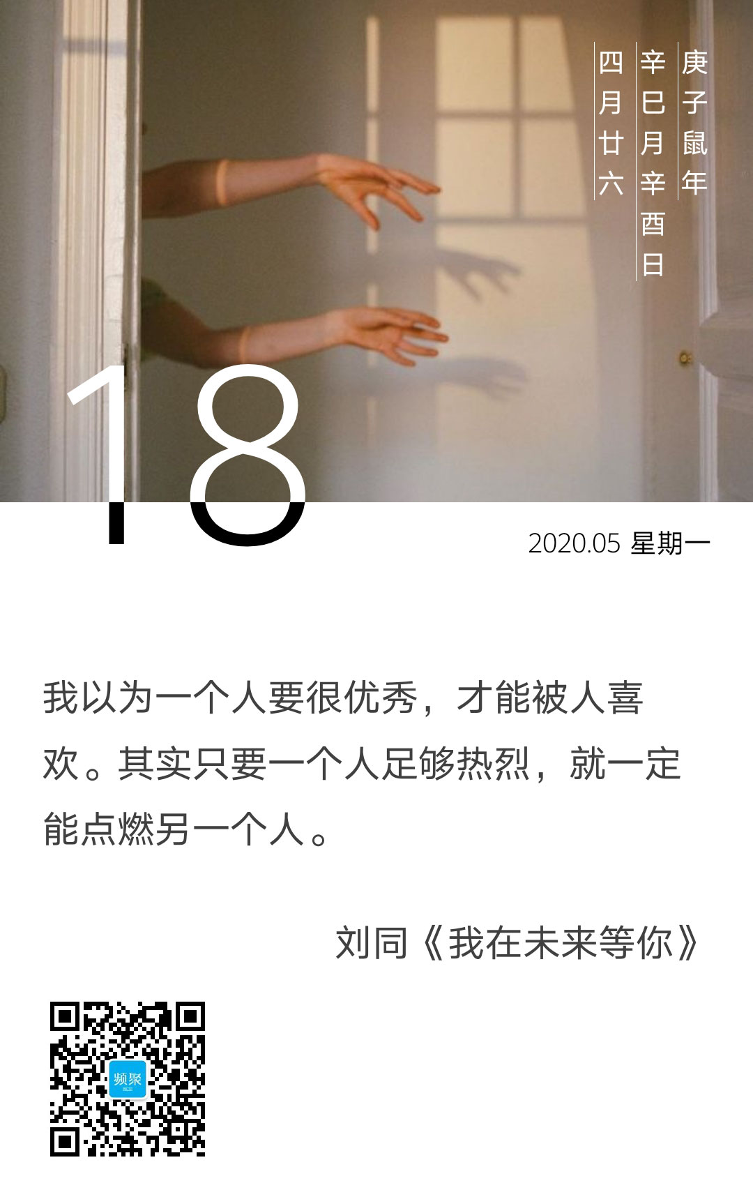 畅销书作家刘同在《我在未来等你》中这样写道,我以为一个人要很优秀,才能被人喜欢。其实只要一个人足够热烈,就一定能点燃另一个人。以我对他浅薄的了解,优秀不优秀,我不敢断言,但努力成为优秀那些人,是一定的。