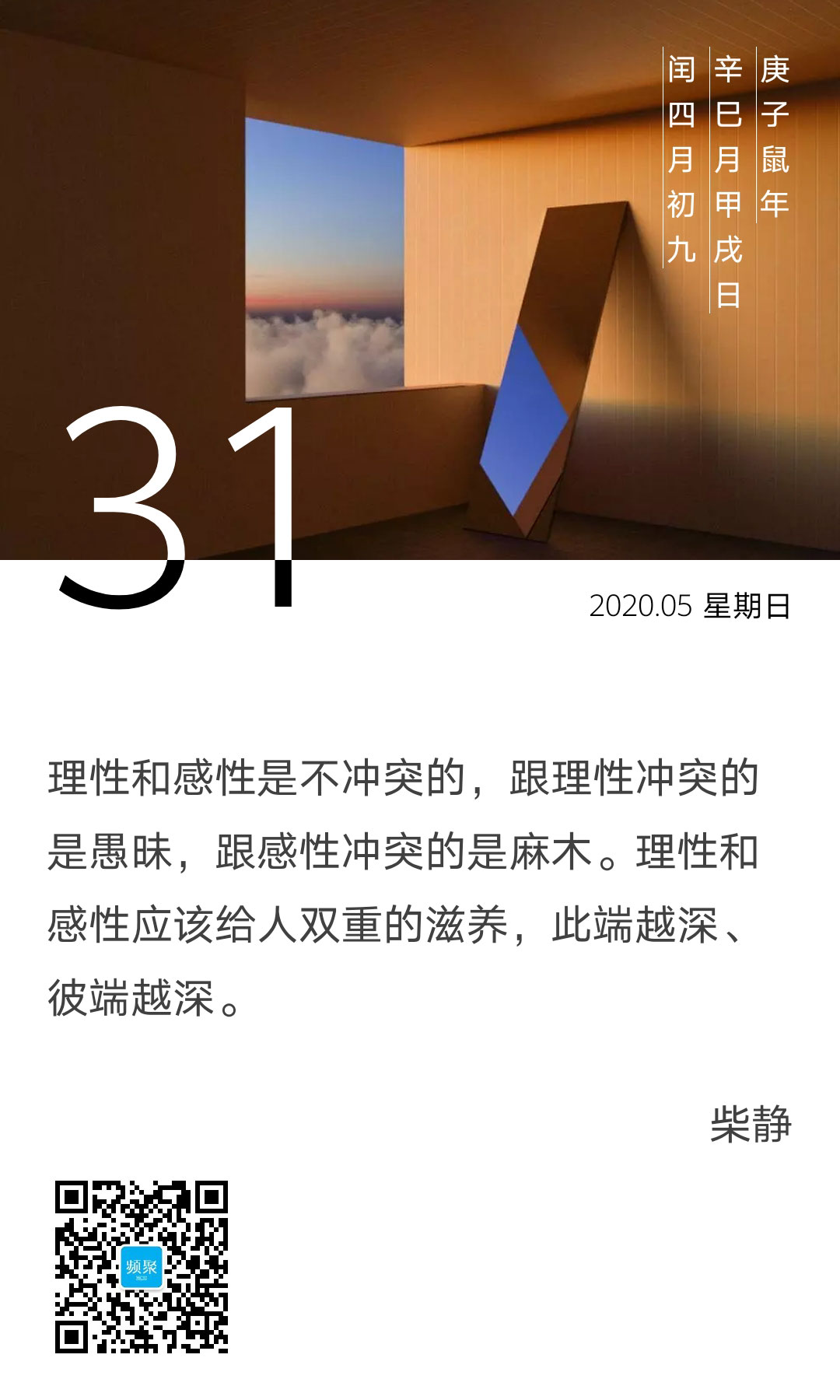前电视媒体人柴静曾经说,理性和感性是不冲突的,跟理性冲突的是愚昧,跟感性冲突的是麻木。理性和感性应该给人双重的滋养,此端越深,彼端越深。