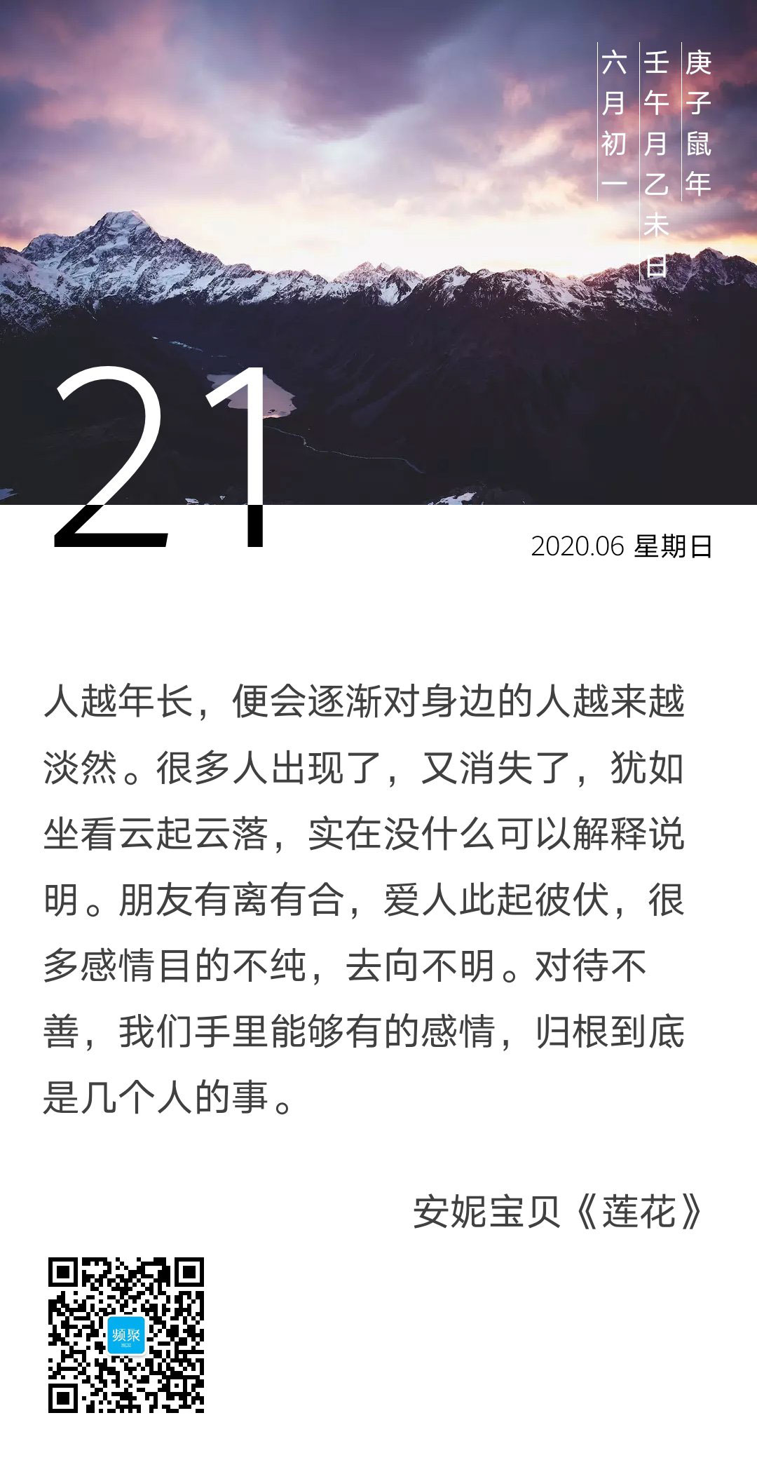 作家庆山若干年前还叫安妮宝贝,她在《莲花》中这样写道,人越年长,便会逐渐对身边的人越来越淡然。很多人出现了,又消失了,犹如坐看云起云落,实在没什么可以解释说明。朋友有离有合,爱人此起彼伏,很多感情目的不纯,去向不明。对待不善,我们手里能够有的感情,归根到底是几个人的事。