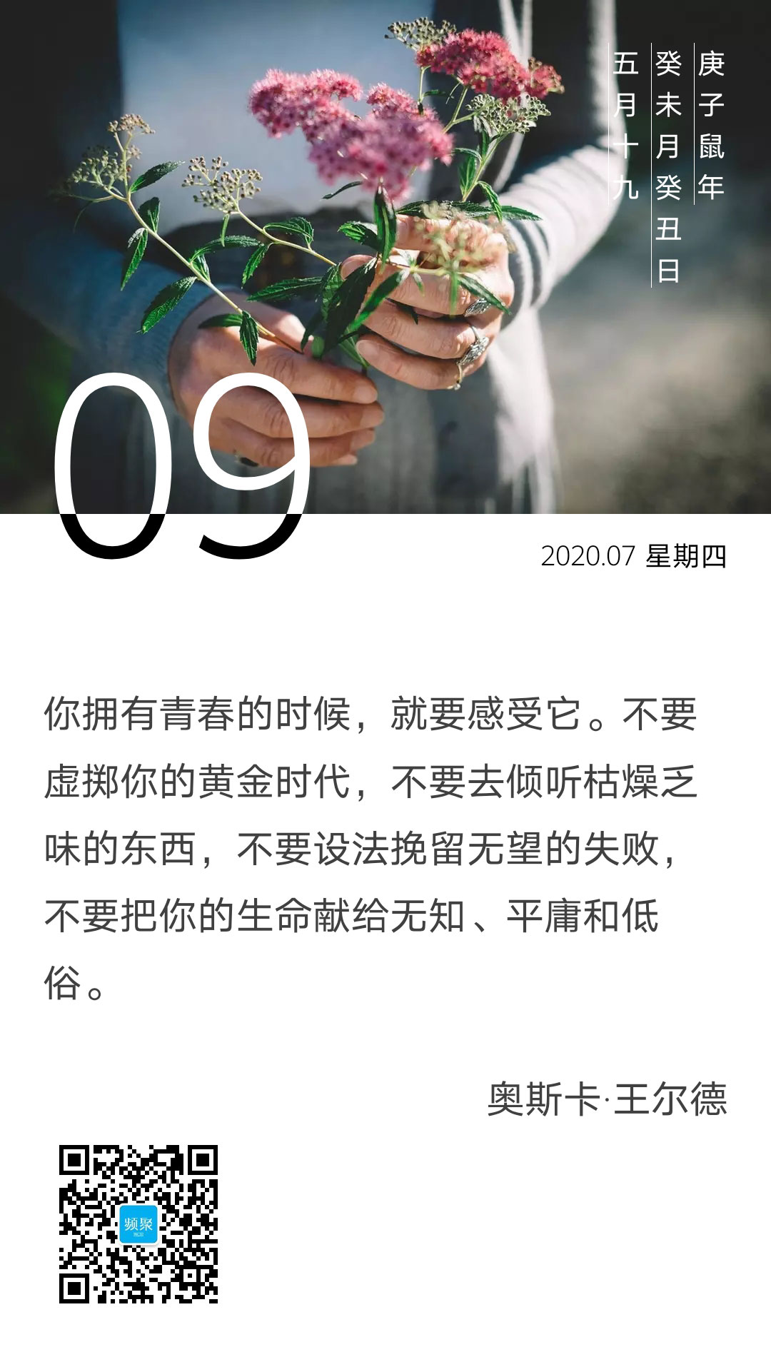 奥斯卡·王尔德说,你拥有青春的时候,就要感受它。不要虚掷你的黄金时代,不要去倾听枯燥乏味的东西,不要设法挽留无望的失败,不要把你的生命献给无知、平庸和低俗。