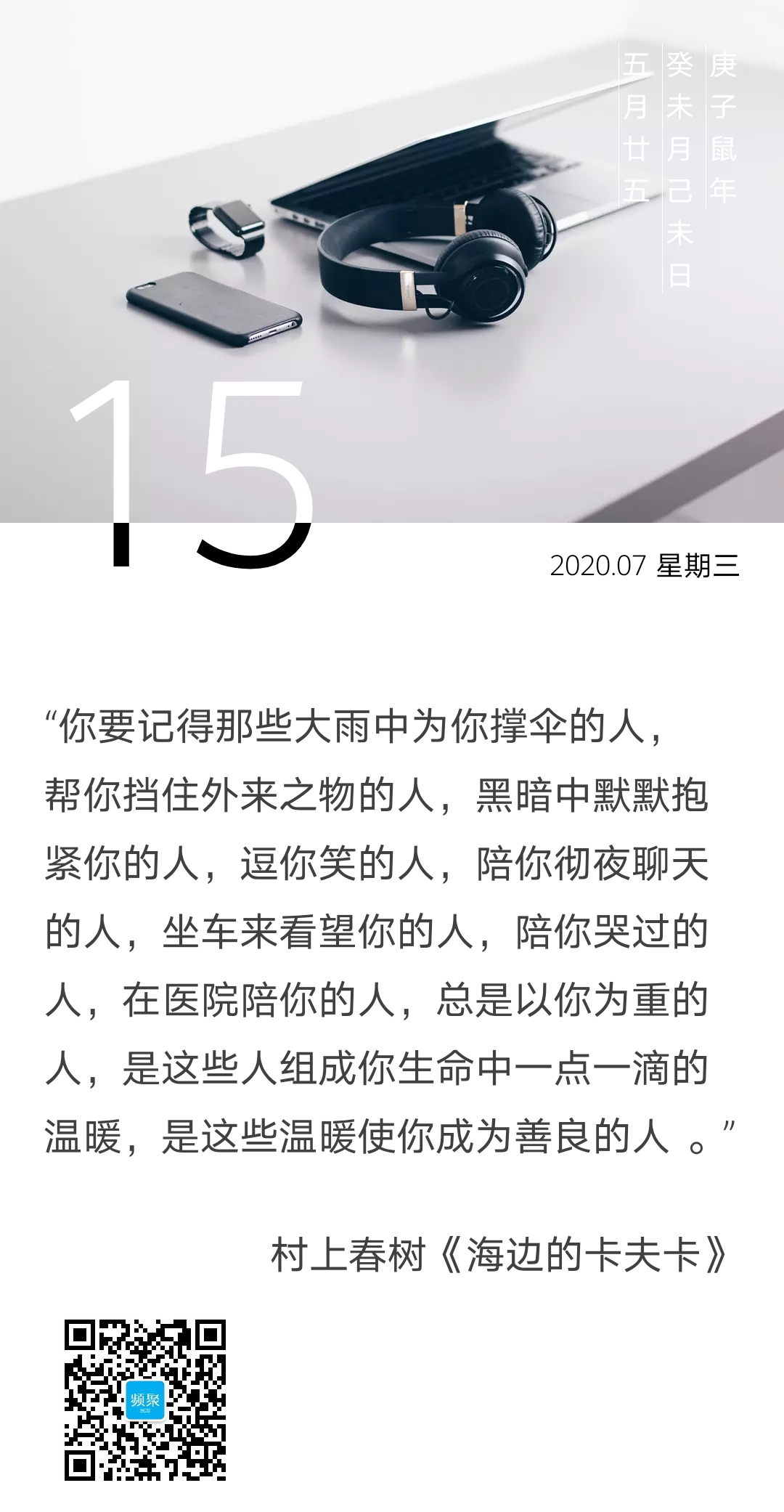 日本作家村上春树在他的代表作品《海边的卡夫卡》中这样写道,你要记得那些大雨中为你撑伞的人,帮你挡住外来之物的人,黑暗中默默抱紧你的人,逗你笑的人,陪你彻夜聊天的人,坐车来看望你的人,陪你哭过的人,在医院陪你的人,总是以你为重的人,是这些人组成你生命中一点一滴的温暖,是这些温暖使你成为善良的人 。