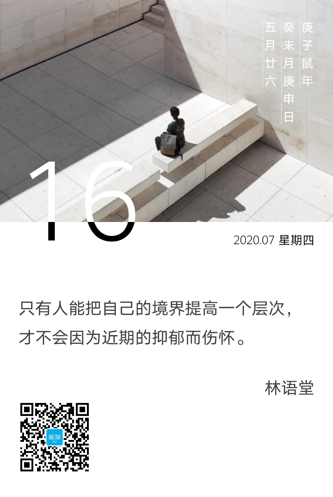 作家林语堂说,只有人能把自己的境界提高一个层次,才不会因为近期的抑郁而伤怀。以做“阅读理解题”的方式来解析这句话,无外乎两个点:一个是“跳出自己”,一个是“拉长时距”。