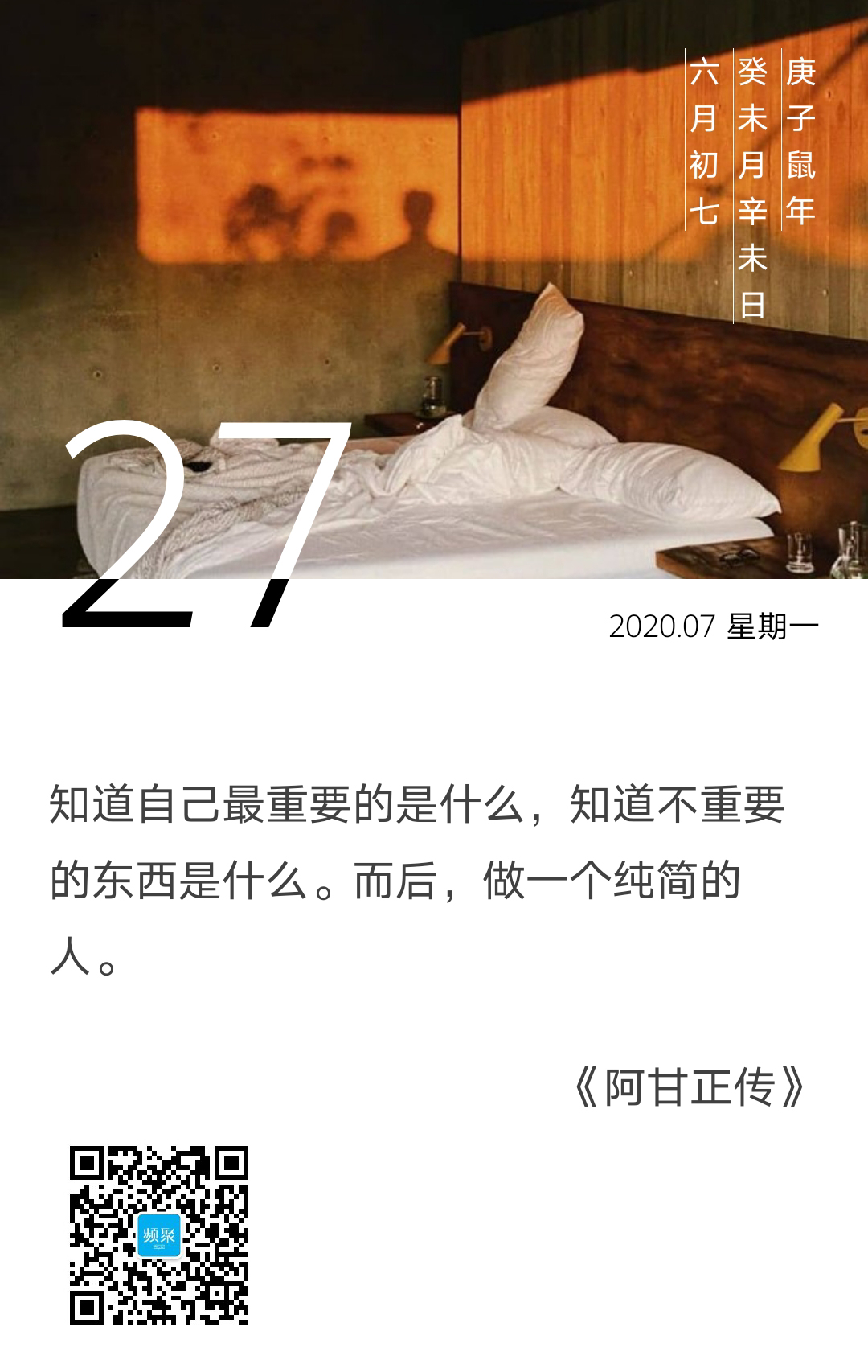 《阿甘正传》中有这样一句话:知道自己最重要的是什么,知道不重要的东西是什么。而后,做一个纯简的人。明白自己有什么,知道自己要什么,不过只是“自我认知”的清晰,与真正抵达目标,离自己将要成为什么,还欠缺很多“火候”。在这个过程之中,是做一个“纯简”的人,还是变得比较“复杂”,也不能直接用“对错”来进行审视。