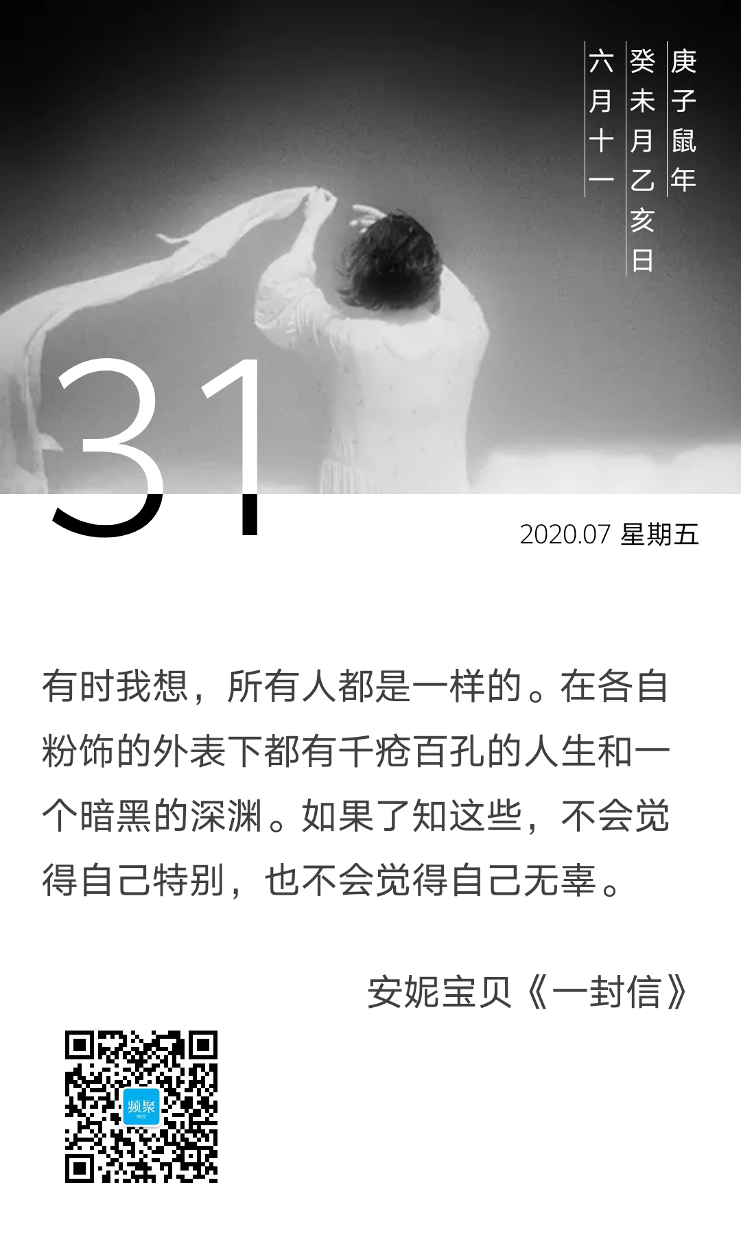 作家庆山当年还叫安妮宝贝时曾写下这样的话, 有时我想,所有人都是一样的。在各自粉饰的外表下都有千疮百孔的人生和一个暗黑的深渊。如果了知这些,不会觉得自己特别,也不会觉得自己无辜。