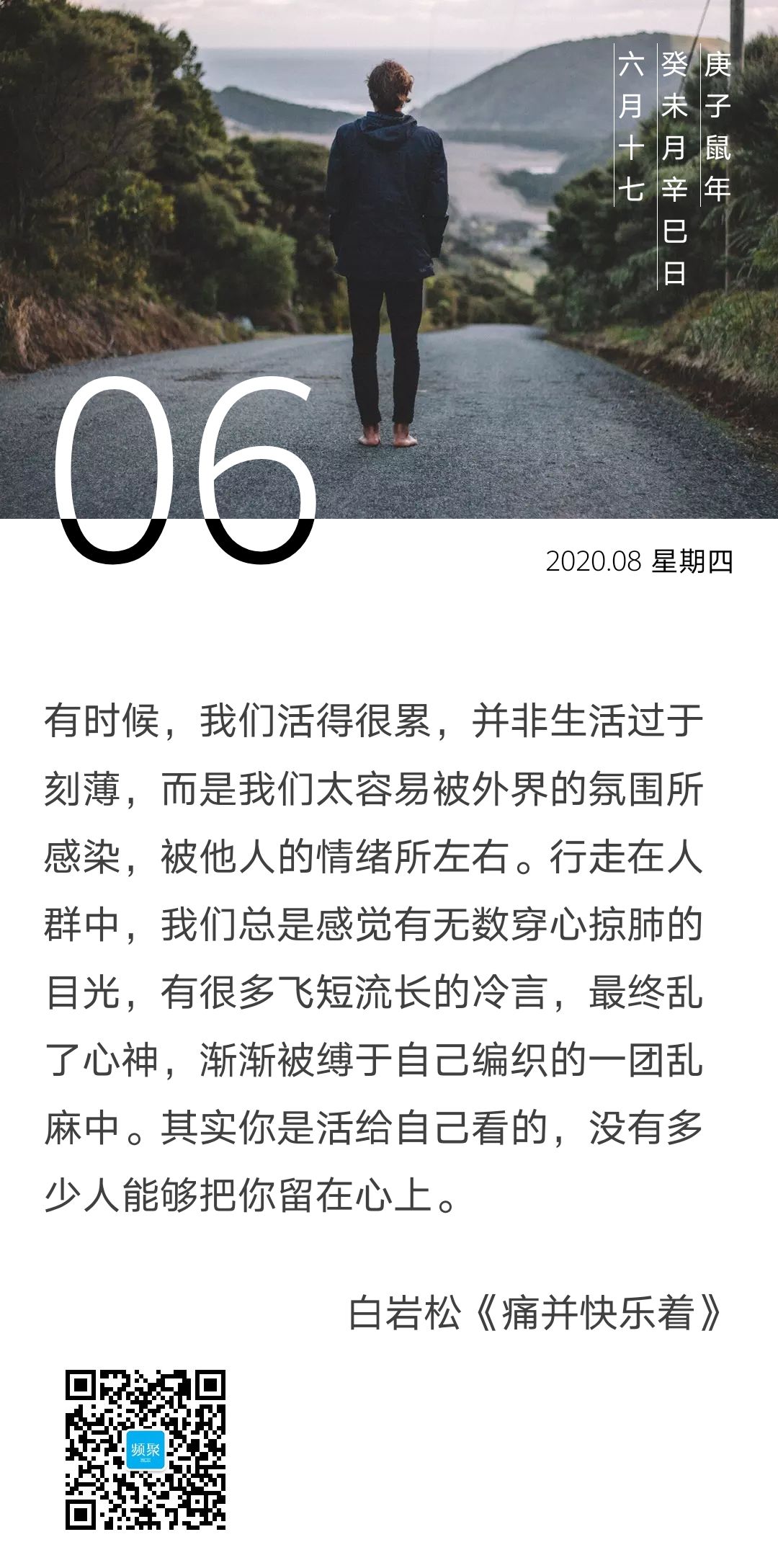 不管你在做什么,是什么状态,成就过什么,失去过什么,总有个终极的命题等着你。看惯了牺牲、听多了奉献、悟透了计较、拆解了竞争,以为到了某个年纪就彻底洒脱了,不曾想早早就瞄见了“休止符”就在不远的前方。