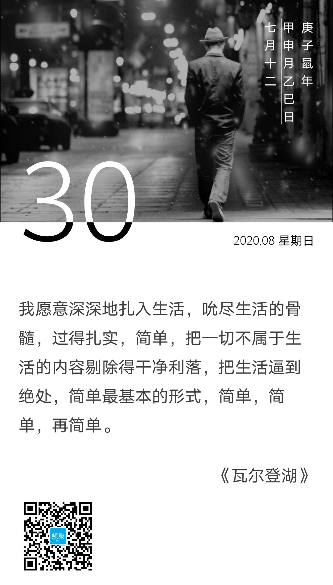 “美国隐士”梭罗在《瓦尔登湖》中有这样一段文字:我愿意深深地扎入生活,吮尽生活的骨髓,过得扎实、简单,把一切不属于生活的内容剔除的干净利落,把生活逼到绝处,简单最基本的形式,简单,简单,再简单。