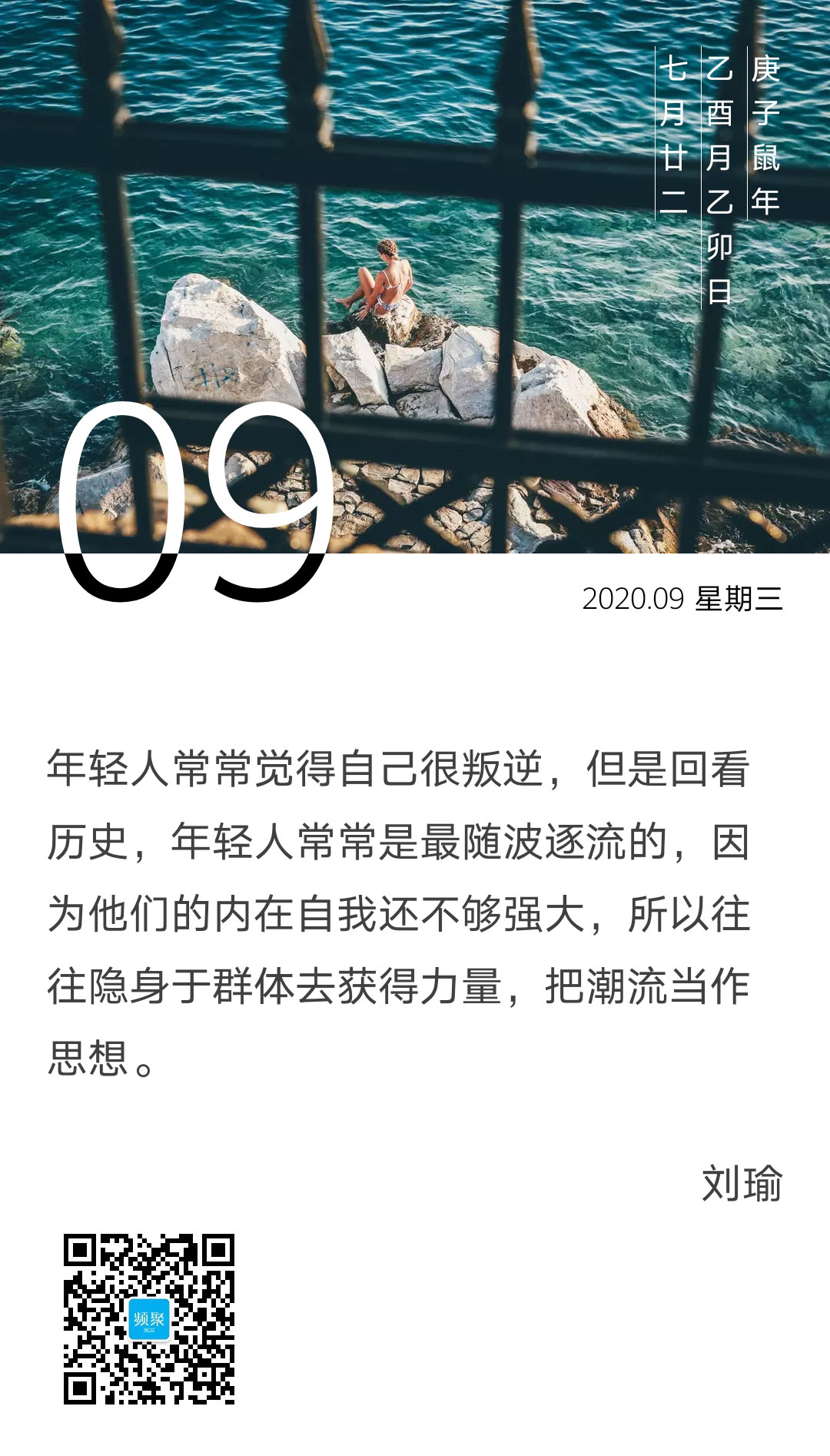 作家刘瑜曾说,年轻人常常觉得自己很叛逆,但是回看历史,年轻人常常是最随波逐流的,因为他们的内在自我还不够强大,所以往往隐身于群体去获得力量,把潮流当作思想。