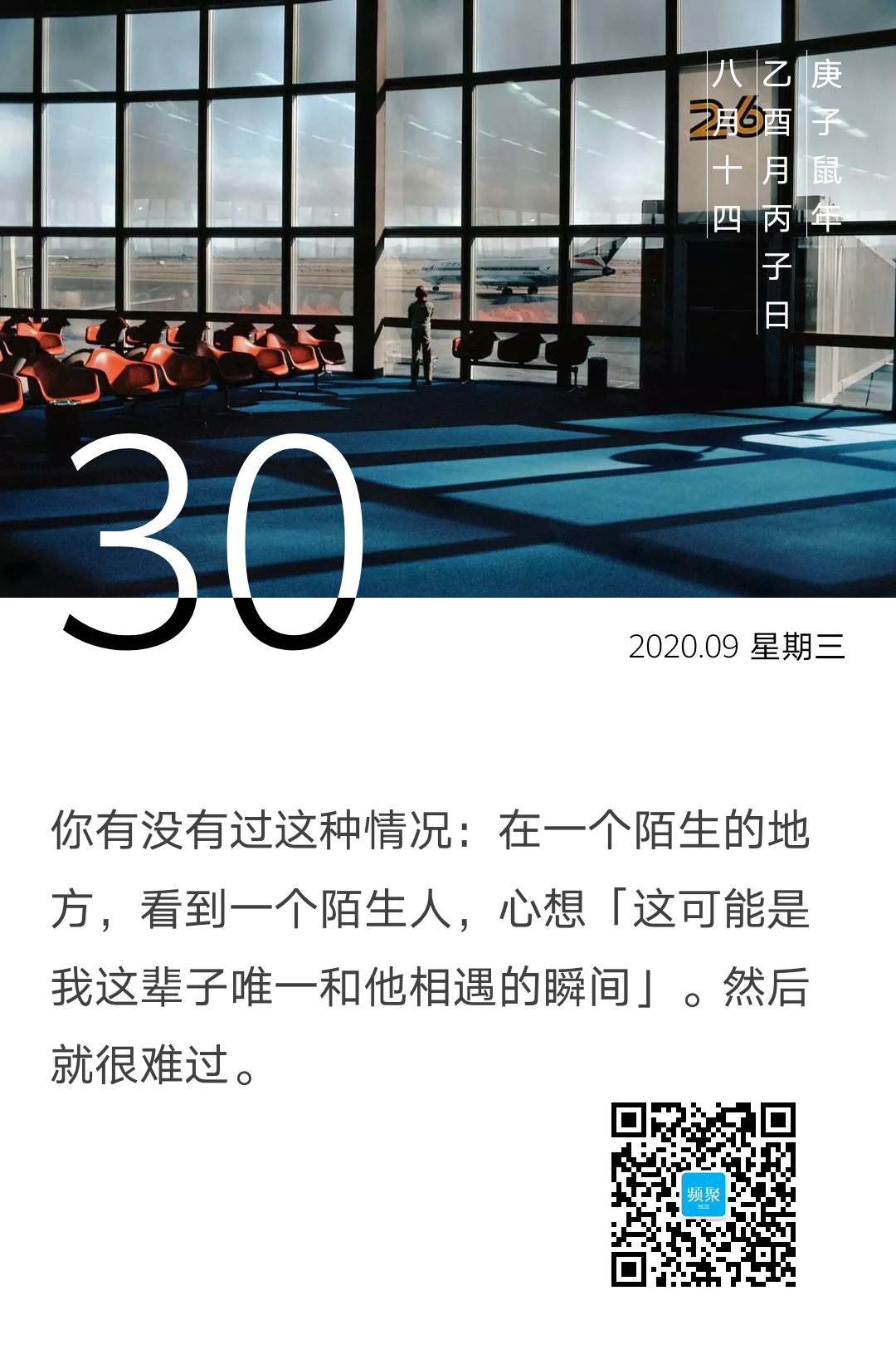 你有没有过这种情况:在一个陌生的地方,看到一个陌生人,心想“这可能是我这辈子唯一和他相遇的瞬间”。然后就很难过。难过的不仅仅是匆匆偶遇本身,还有我们无法用言语准确表达这类说不清、道不明的难过。