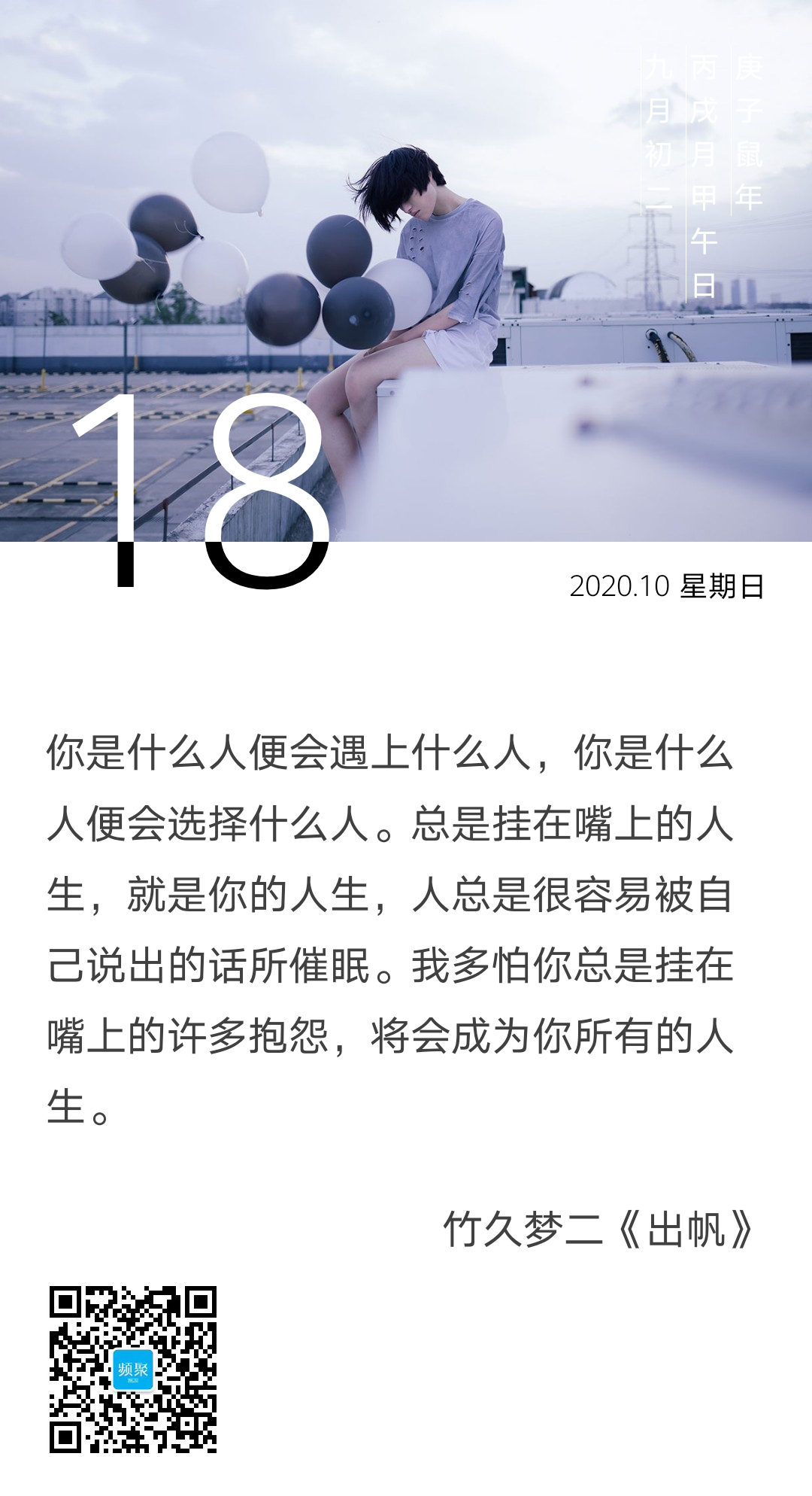 你是什么人便会遇上什么人,你是什么人便会选择什么人。总是挂在嘴上的人生,就是你的人生,人总是很容易被自己说出的话所催眠。我多怕你总是挂在嘴上的许多抱怨,将会成为你所有的人生。