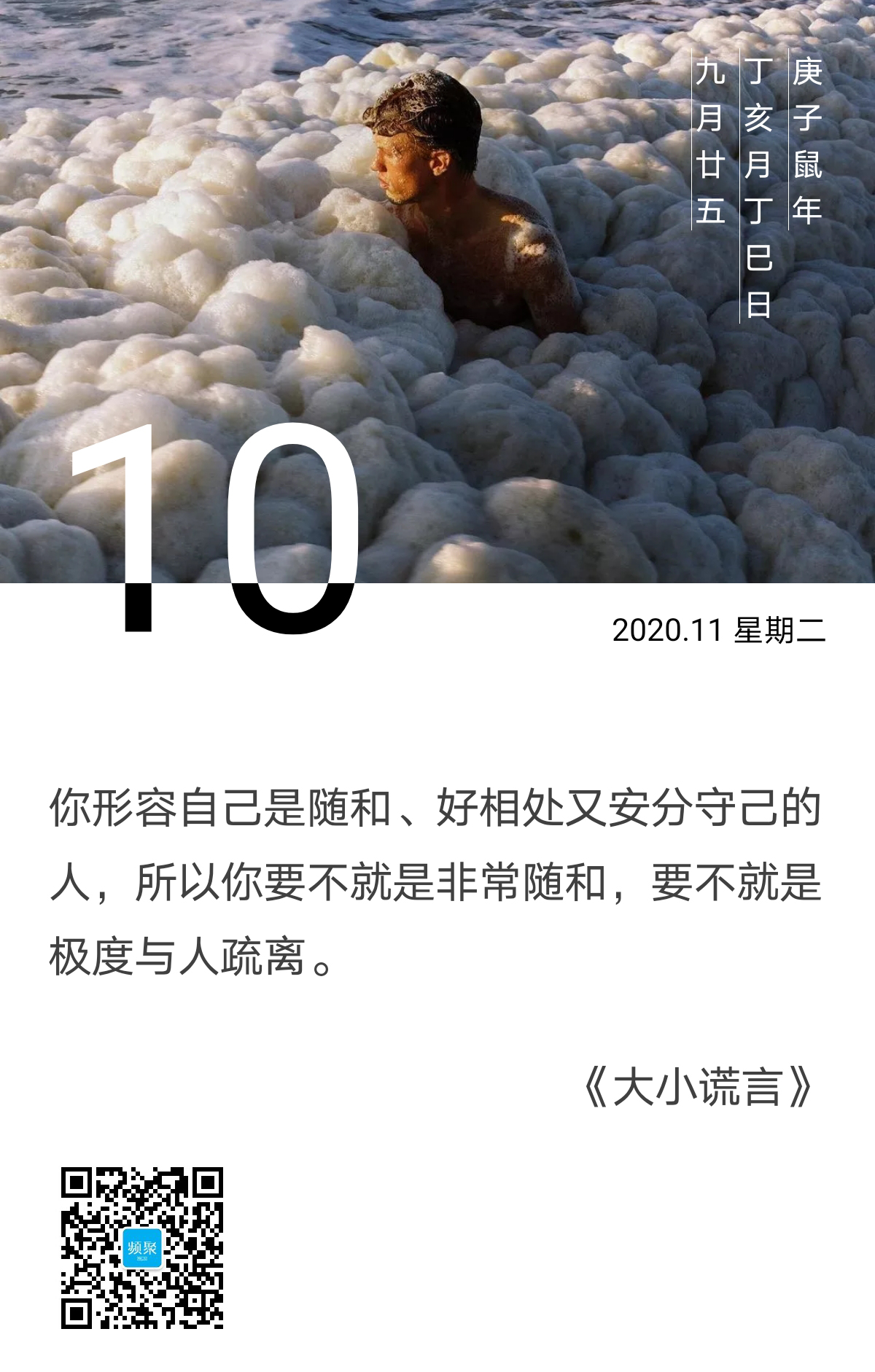 今年上半年读过澳大利亚作家莉安·莫里亚蒂的小说《大小谎言》,在书中她曾借人物之口说出了现实中我们常常采取的这种掩饰机制:你形容自己是随和、好相处又安分守己的人,所以你要不就是非常随和,要不就是极度与人疏离。