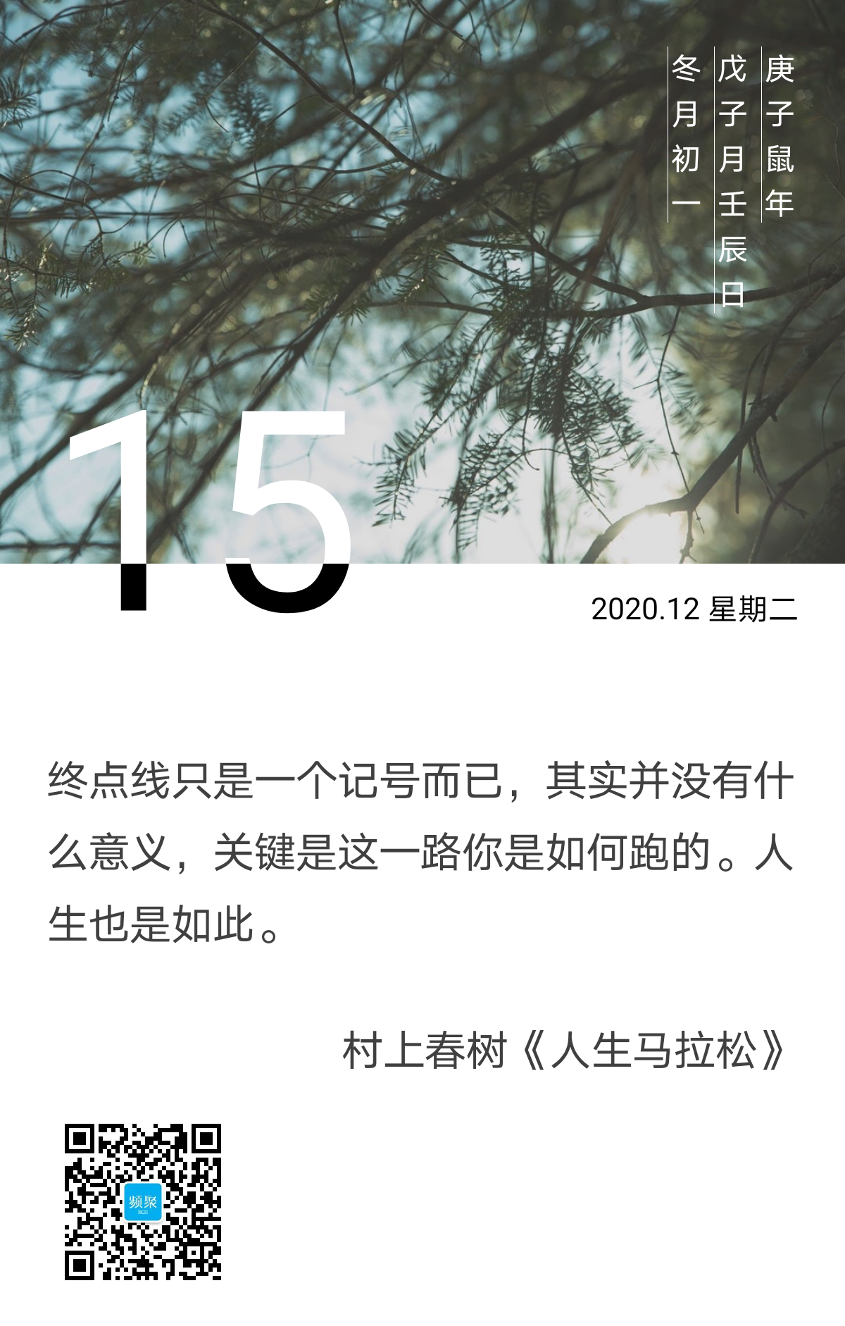 作家村上春树在《人生马拉松》中也有类似的讲法:终点线只是一个记号而已,其实并没有什么意义,关键是这一路你是如何跑的。人生也是如此。我觉得设置个“终点”是有必要的,需要有计划地去提升,但提升这件事情才是最终需要抵达的“终点”。