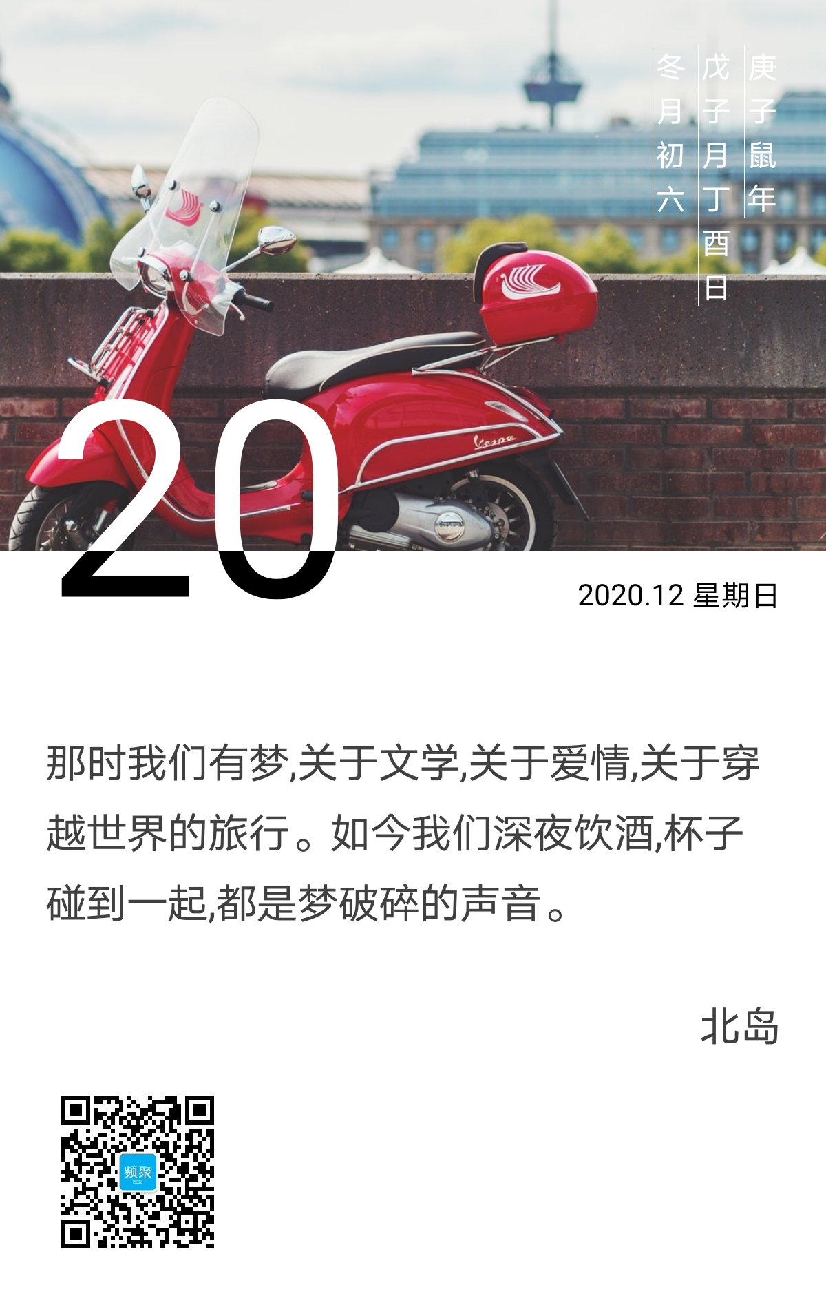 如今的处境与北岛等那一代诗人“红极一时”相比,已经不同了。大概也像北岛曾经说过的那样:那时我们有梦,关于文学,关于爱情,关于穿越世界的旅行。如今我们深夜饮酒,杯子碰到一起,都是梦破碎的声音。