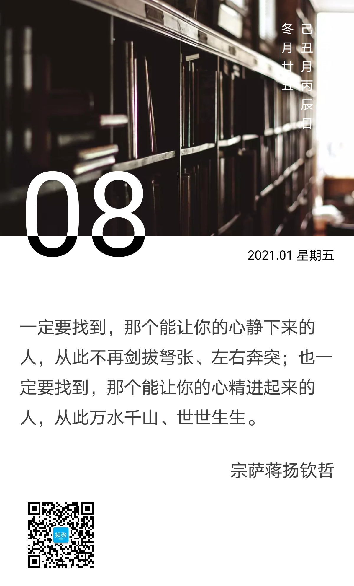 “一定要找到,那个能让你的心静下来的人,从此不再剑拔弩张、左右奔突;也不一定要找到,那个能让你心精进起来的人,从此万水千山、世世生生。”