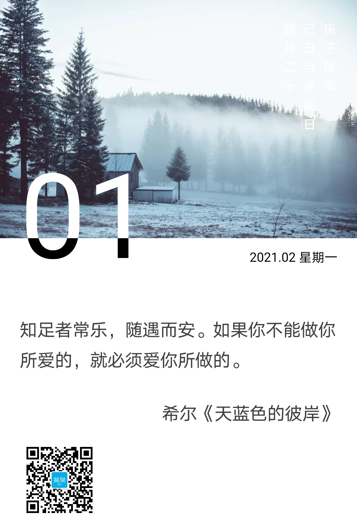 英国作家亚历克斯希勒在《天蓝色的彼岸》曾写道:知足者常乐,随遇而安。如果你不能做你所爱的,就必须爱你所做的。这个“必须”在我眼里过于强求了,“爱”的标准也偏高了一些,很多人难以违心地去达到这样的境界。