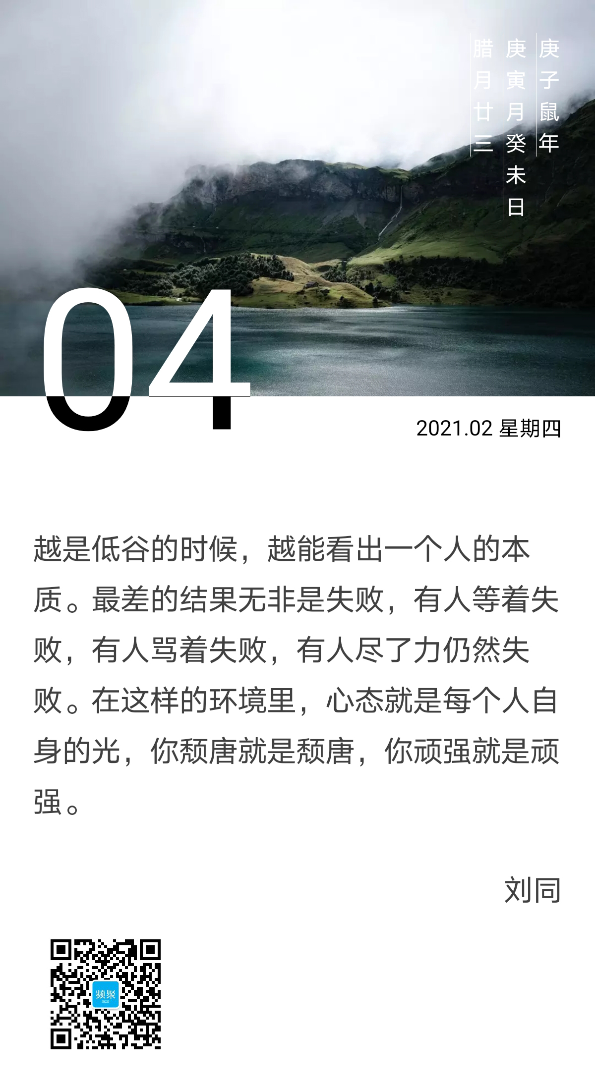越是低谷的时候,越能看出一个人的本质。最差的结果无非是失败,有人等着失败,有人骂着失败,有人尽了力仍然失败。在这样的环境里,心态就是每个人自身的光,你颓唐就是颓唐,你顽强就是顽强。