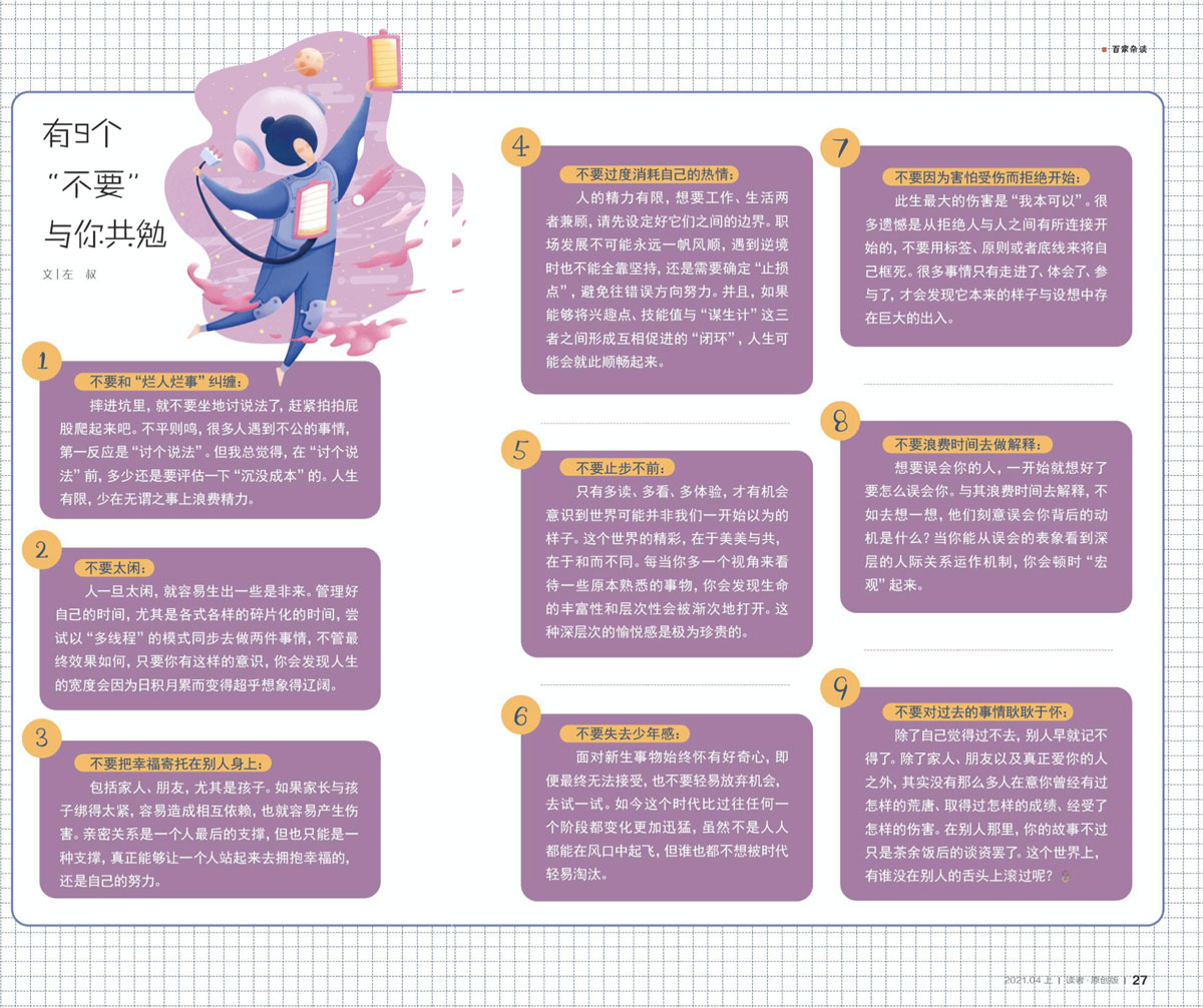 这9个“不要”,有些来自别人的提问给我的启发,有些是我自已个人经历了一些事情之后的反思,可能有失偏颇,未必句句在理。