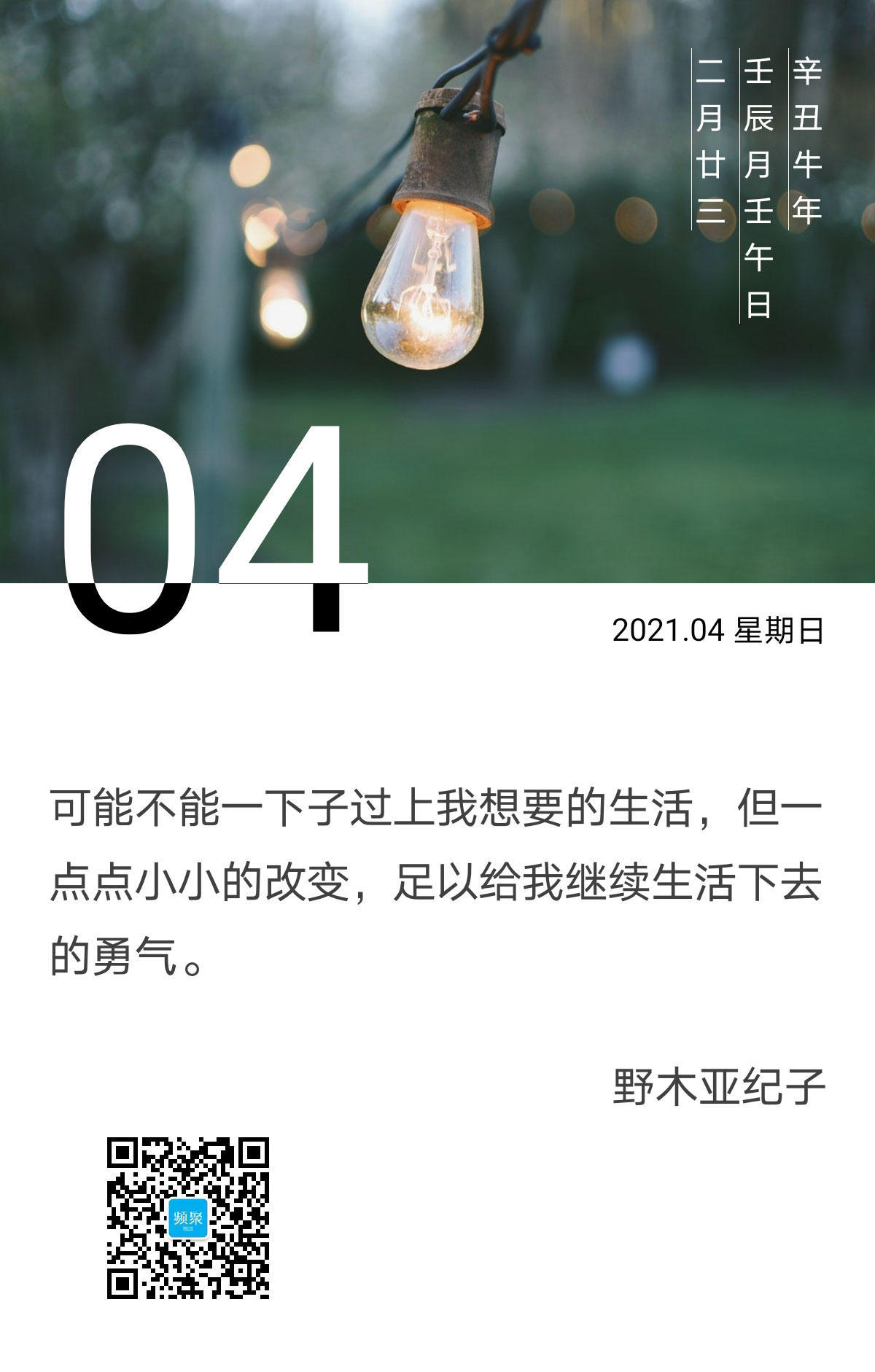 很多人和我一样,无法现在就过上自己真正想要的生活,但我觉得不管最终有没有办法抵达自己的目标,现如今每一点微小的改变里面都藏着一丝有可能的希望。
