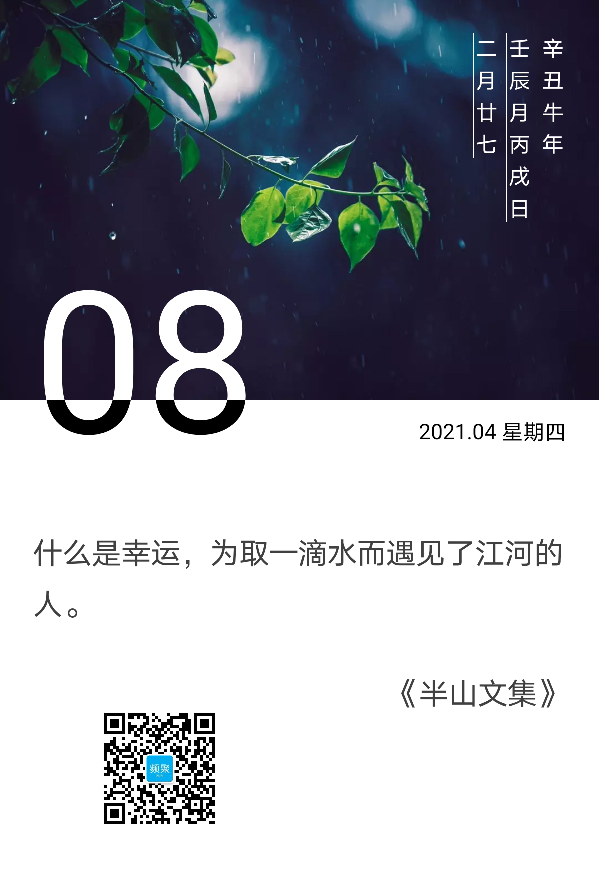 “什么是幸运,为取一滴水而遇见了江河的人。”