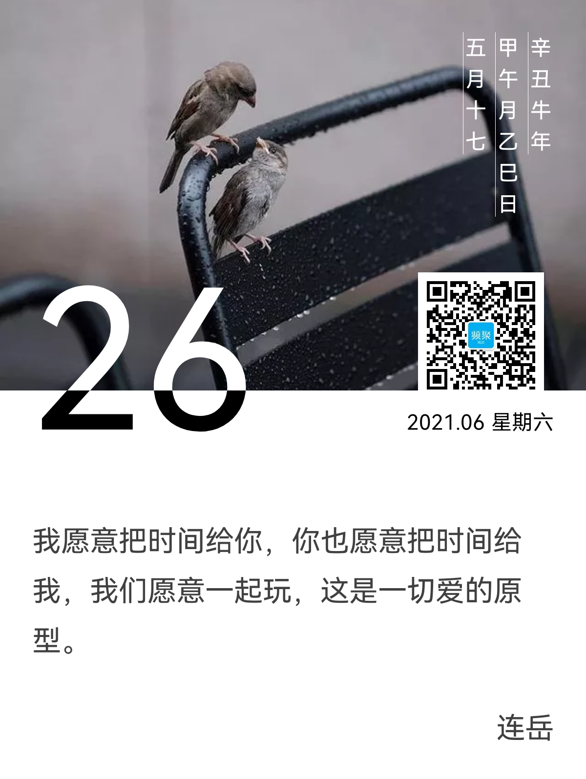 爱的原型,就是彼此甘愿付给对方的精力和时间。不卑不亢、不慌不忙,对方给你的,你要珍惜好,不是那么心甘情愿、总是借口一堆的,其实也没有什么大不了,只要记住别空掷自己的精力和时间,在错付的人身上。