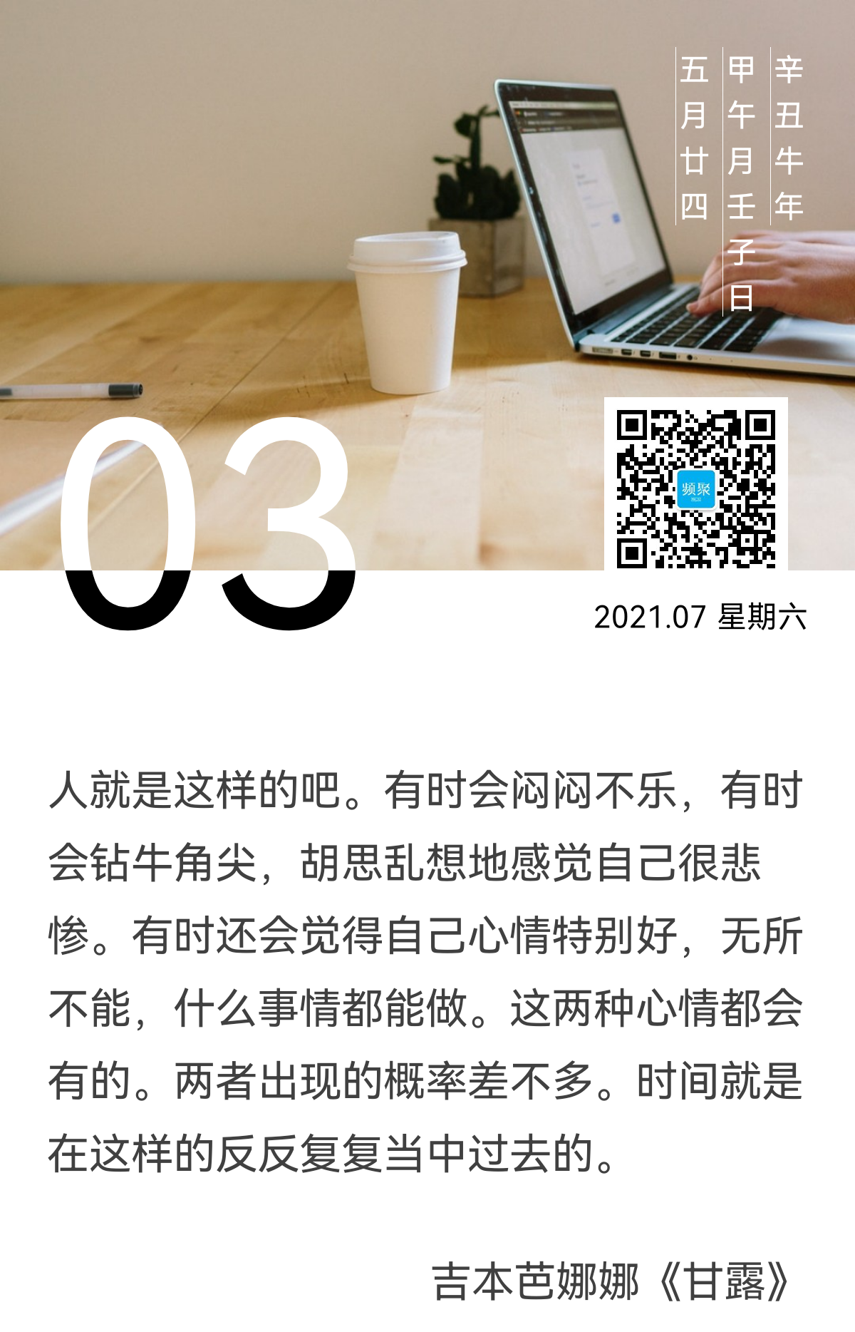 写#日签#这事也是如此,长则长已,短则短已。思路畅的时候,洋洋洒洒,有时候过了八百字也收不住。有时候就很艰涩啊,开了一个头,码了几行,觉得不妥,又退格回去。写了又删,删了又写,常常也不能成行,多希望能像“自来水”一样,拧开龙头就有。