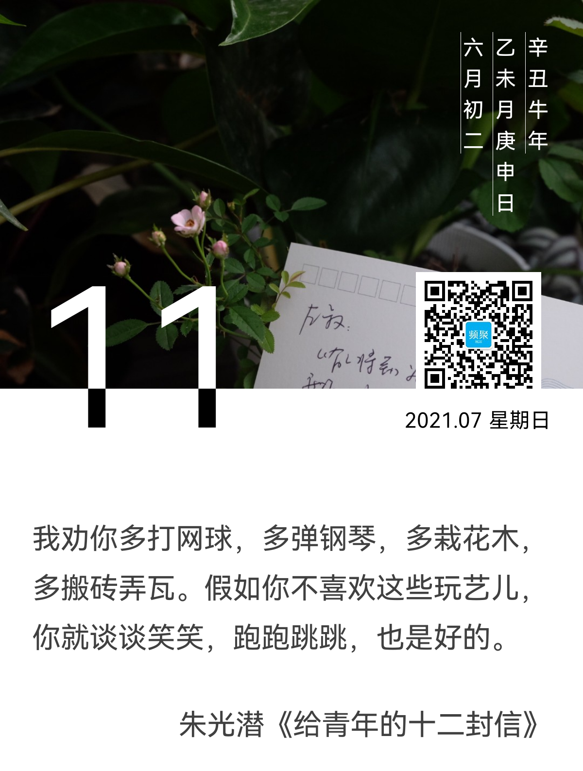 想起朱光潜在若干年前给青年人们的“建议”,希望大家能够将时间和精力投给一些“无用之用”,找到自己的兴趣爱好,让人生有一处可以消磨并且乐此不疲的事情。我觉得,我听进去了,并且似乎也找到了。这样的日子,以我现在的感受来看,既挺充实的,也美好的。