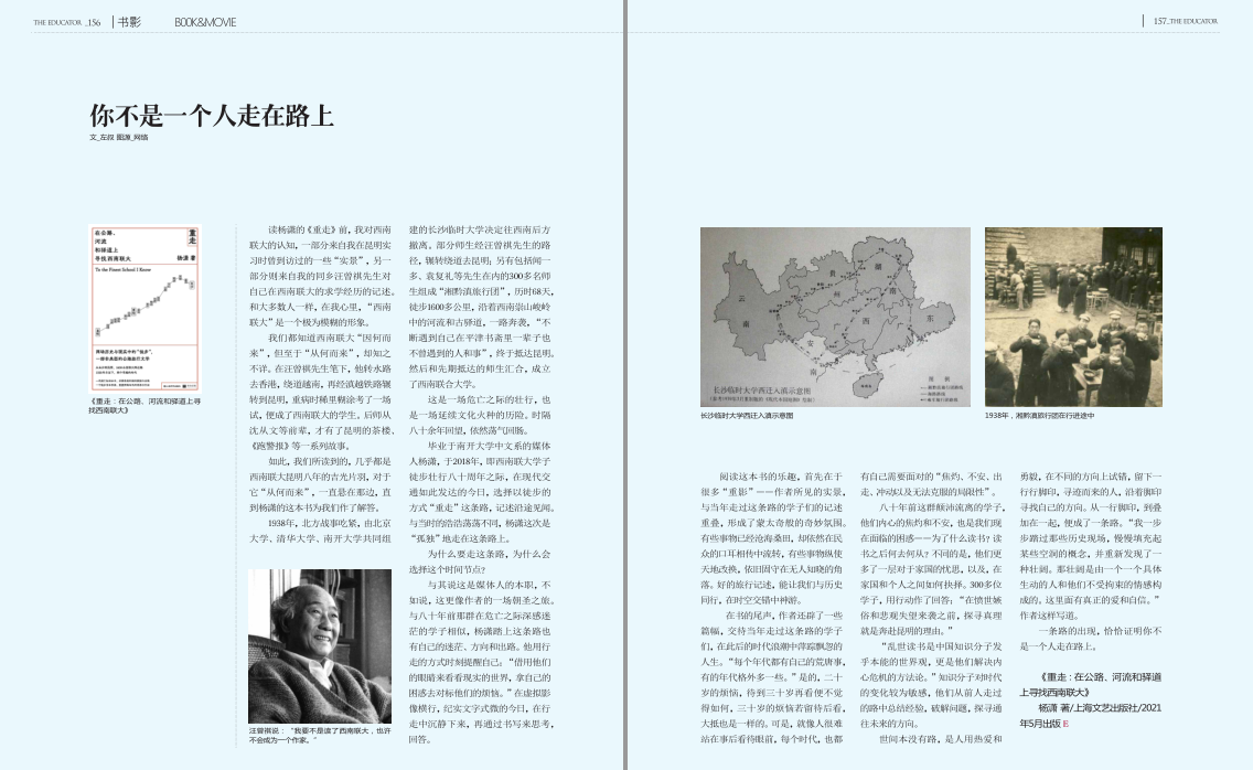 为什么要走这条路,为什么会选样的时间节点?当然,我们都可以将这一切合理化为一个媒体人在找选题,找到了一个适合自己且有表达欲望的选题。但读完这本书,我觉得这不是一个普通的选题,这是一个人的朝圣之旅,在别人走的路上寻找方向。我有一个更为强烈的感受,就是与八十年前的那群在民族危亡之际深感迷茫的学子们相似,杨潇踏上这条路,写这个选题,也有自己所需要面对的迷茫、方向、出路以及用行走来时刻提醒着自己还在向前的心理暗示。在影像横行、纸媒式微的今时今日,一个书写者在行走之中思考自己应该去往的方向。