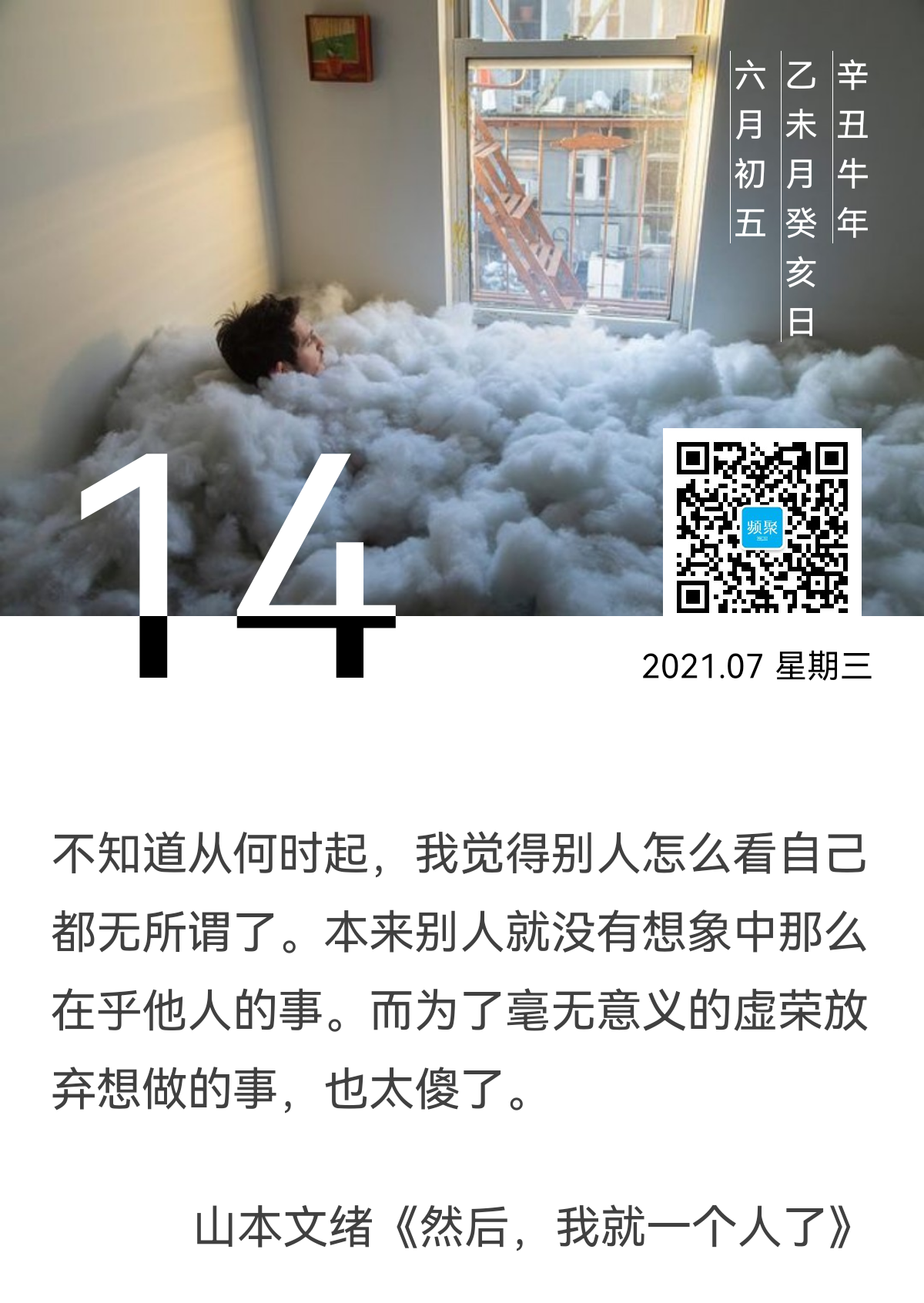 不知道从何时起,我觉得别人怎么看自己都无所谓了。本来别人就没有想象中那么在乎他人的事。而为了毫无意义的虚荣放弃想做的事,也太傻了。