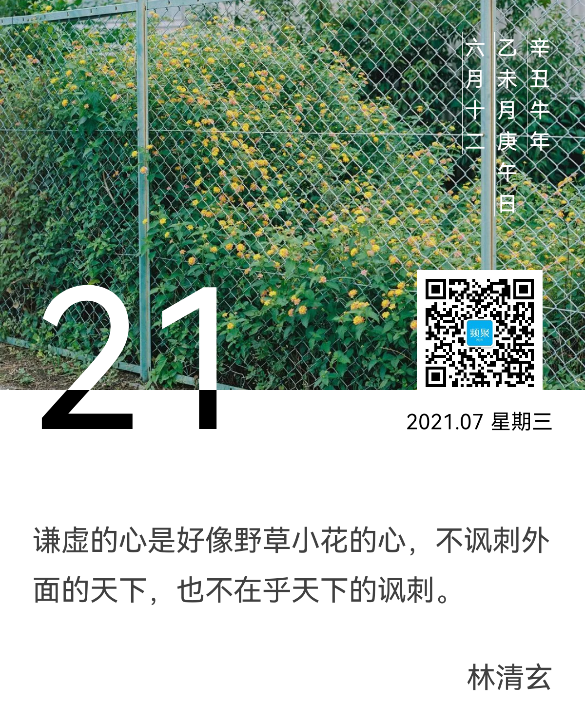 谦虚的心是好像野草小花的心,不讽刺外面的天下,也不在乎天下的讽刺。