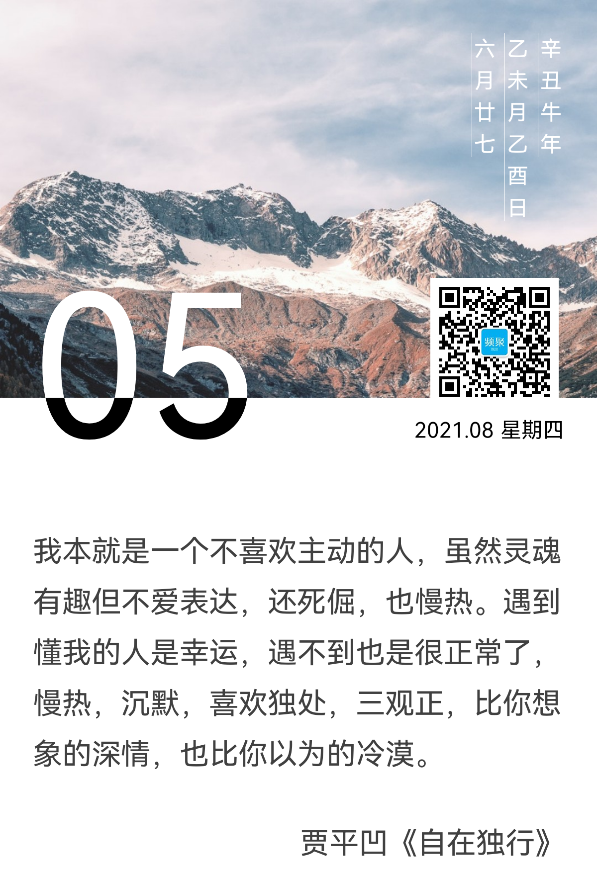 我本就是一个不喜欢主动的人,虽然灵魂有趣但不爱表达,还死倔,也慢热。遇到懂我的人是幸运,遇不到也是很正常了,慢热,沉默,喜欢独处,三观正,比你想象的深情,也比你以为的冷漠。