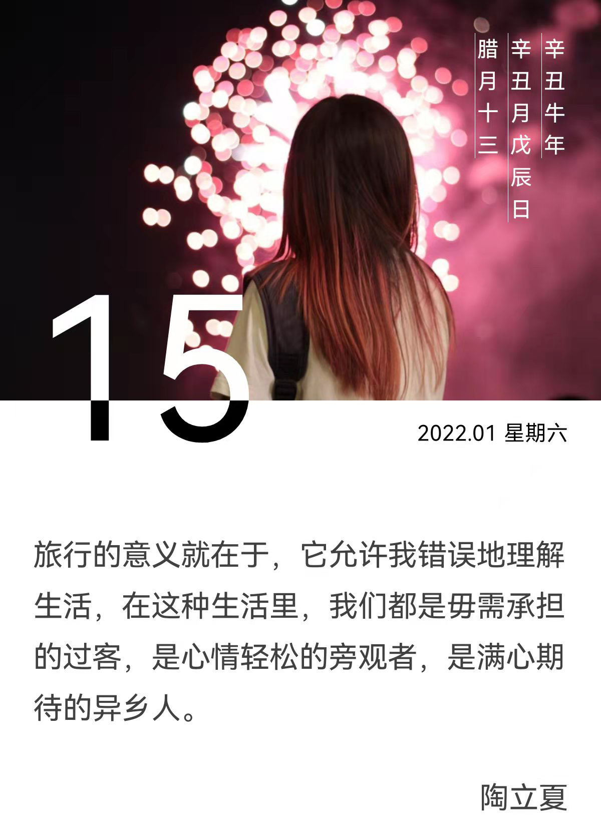 人对于旅行的心理需求,曾经有过非常典型的提炼概括——“生活在别处”,这大概便是陶立夏所言的“过客”“旁观者”“异乡人”的“身份认同”吧。可以暂时卸下现实生活中的种种负重,换个场景旁观和审视自己的生活,拥有喘口气的轻松,再重新一头扎进自己的生活。