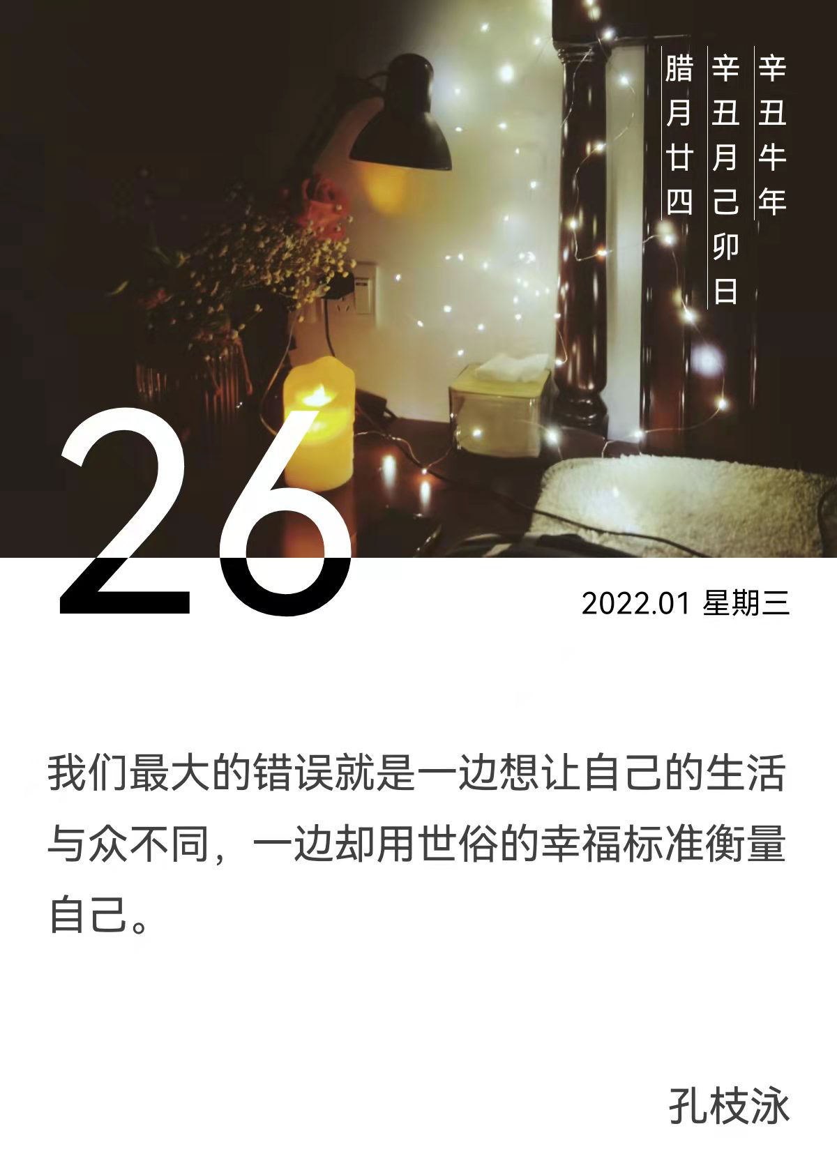 我们最大的错误就是一边想让自己的生活与众不同,一边却用世俗的幸福标准衡量自己。