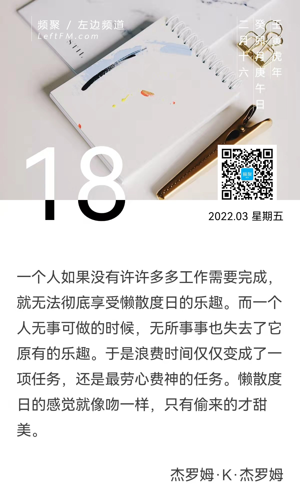 左也不是,右也不是,一身的“贱骨头”。浮生碌碌之中,人一定是要以“偷”的方式,获得这“半日”的恩赐,在其中安排自己以为的“自由”,才觉得这才是人生里的“甜头”,仿佛这“半日”原本并不属于自己一样,那些暂时搁置下来的事情,现在可以不必想,以后可以不必做一般。