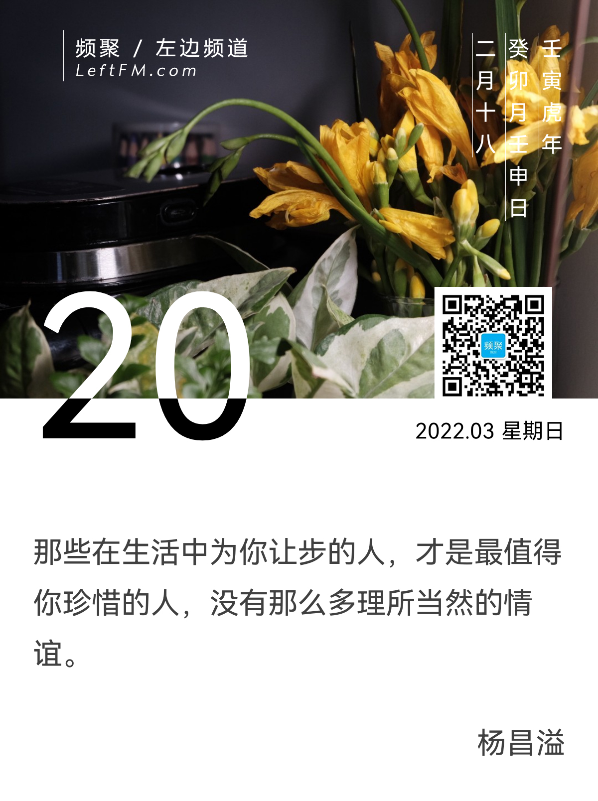 自然会有在意的人,但相处之道却是暗暗扣分那种。一旦扣到及格线以下,往往就是扭头就跑的结果。很多时候,是在让步,但也不至于将自己逼到悬崖边缘。退个三五步,便会发觉某段关系里,自己受困于一厢情愿。此时,就会生出如嚼鸡肋般的感受,哪怕付出再多,也会敢于在纠结之中放弃。