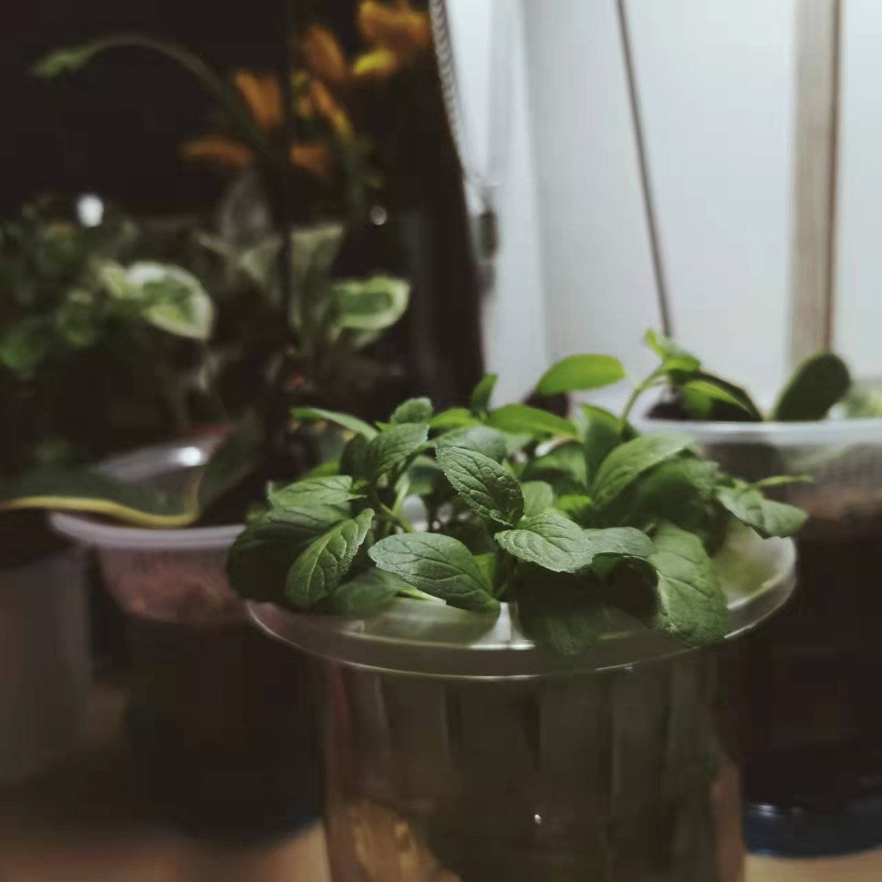我不太理解,为什么很多人薄荷养不好。我觉得自己已经找到将薄荷养成不死草的“密码”了。薄荷这种草,大水、大肥、大太阳就好了,即便通风不怎么好,也没有什么关系。关键就是要打顶,一旦发觉长徒了,就大顶地剪下去。剪下来的,再重新扦插,又是一盆新的。即便旧的死了,新的还活着啊。