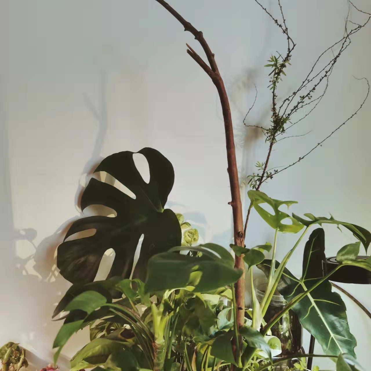 遛狗时捡了一根樟树枝,插在姬龟背的盆里面当作立柱;生日蛋糕装饰了一顶假珍珠的皇冠,吃完洗干净放在了灯罩上。除此之外,还有无数的瓶瓶罐罐,细细碎碎的杂物。我有时候会嫌弃父母和女儿有“囤积”的问题,细细想想,我其实也是强大基因链中担起“传承”的那一环。