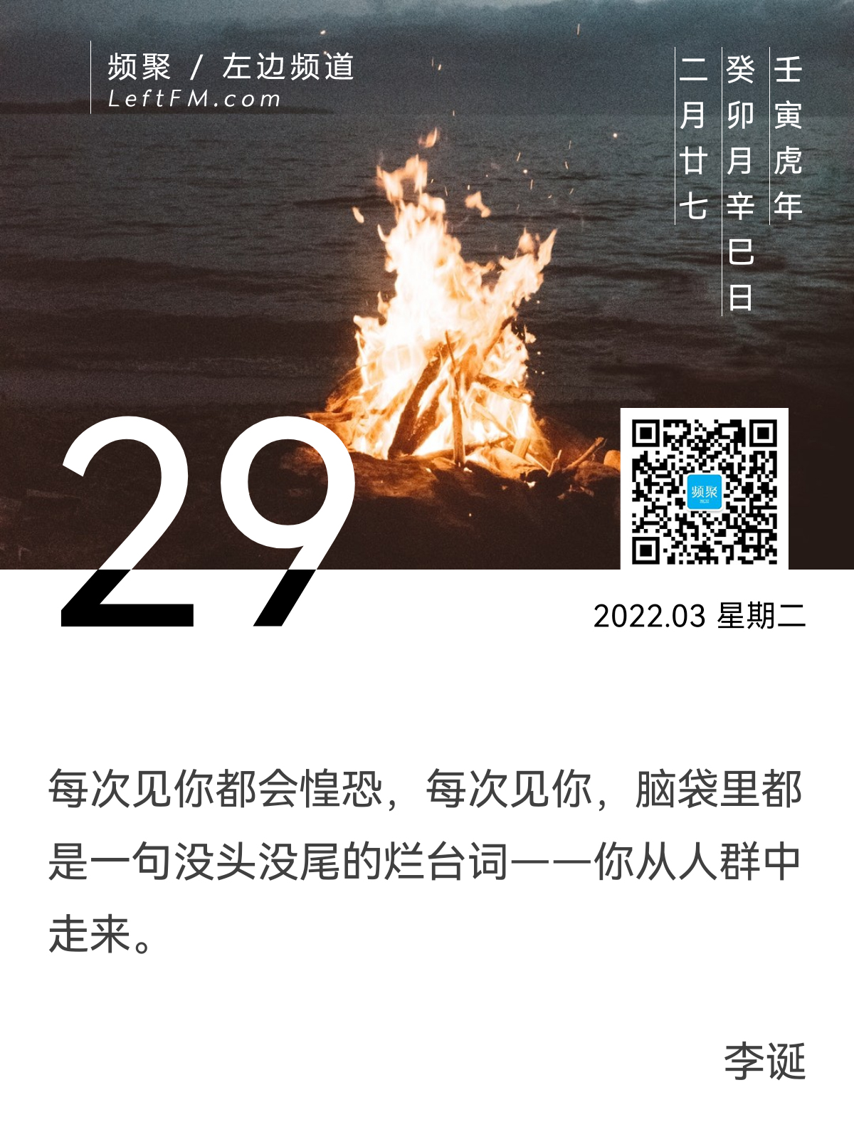 每次见你都会惶恐,每次见你,脑袋里都是一句没头没尾的烂台词——你从人群中走来。