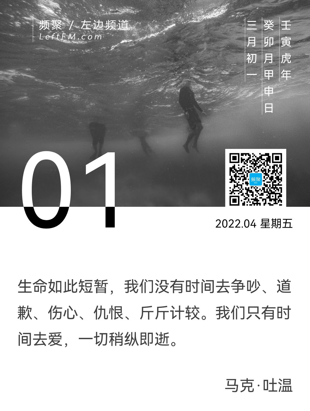 生命如此短暂,我们没有时间去争吵、道歉、伤心、仇恨、斤斤计较。我们只有时间去爱,一切稍纵即逝。
