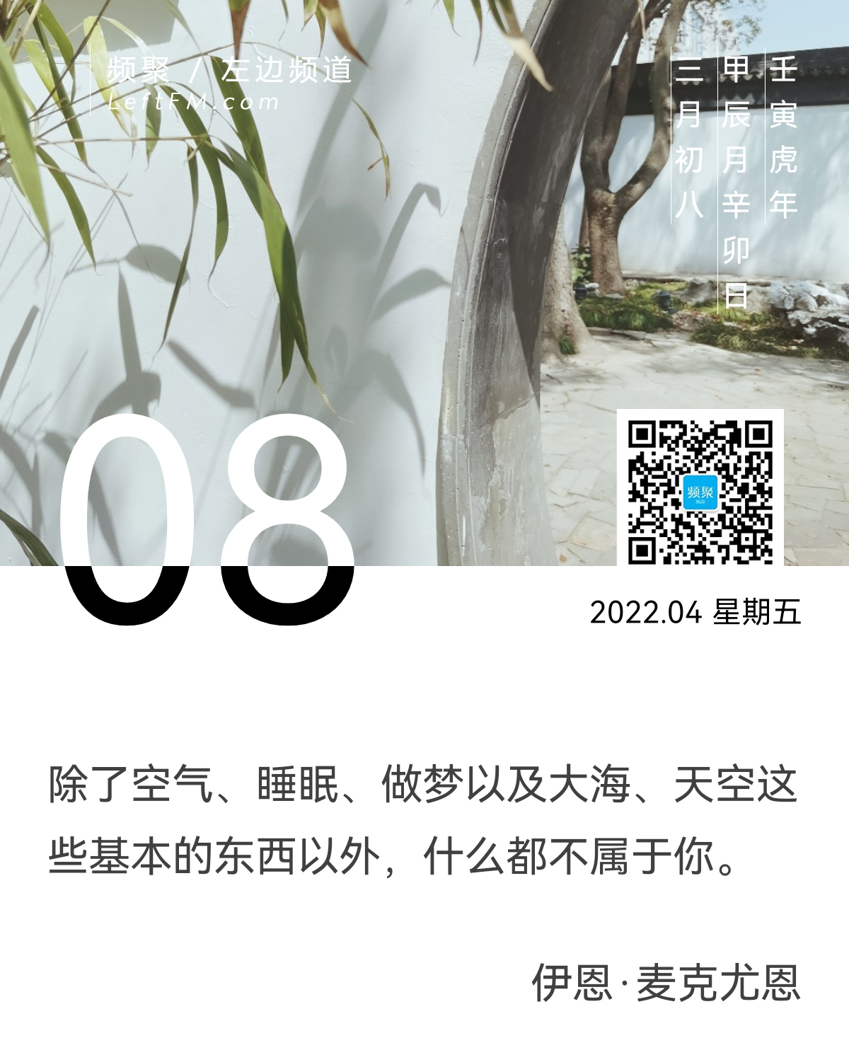 除了空气、睡眠、做梦以及大海、天空这些基本的东西以外,什么都不属于你。