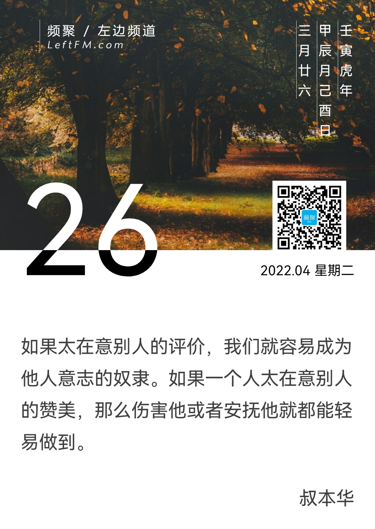 如果太在意别人的评价,我们就容易成为他人意志的奴隶。如果一个人太在意别人的赞美,那么伤害他或者安抚他就都能轻易做到。
