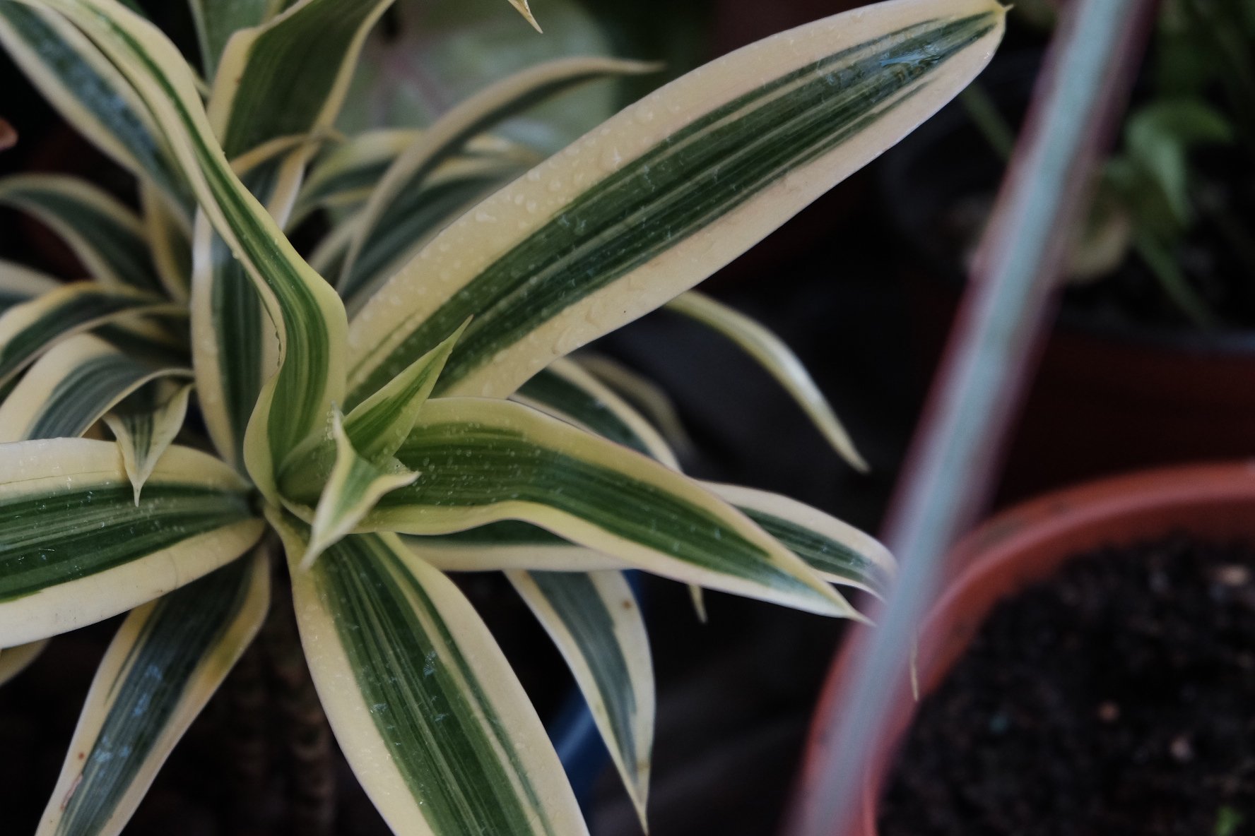 七彩千年木,市面可售的大植株大约1米2至1米5的高度,我这株可能还不到30公分。很多植物,我都喜欢从小苗开始养起,然后一点一点地看着它长大,还蛮有成就感的。七彩千年木,属于比较皮实的植物,只要不乱浇水、不冻着,基本上问题不大。