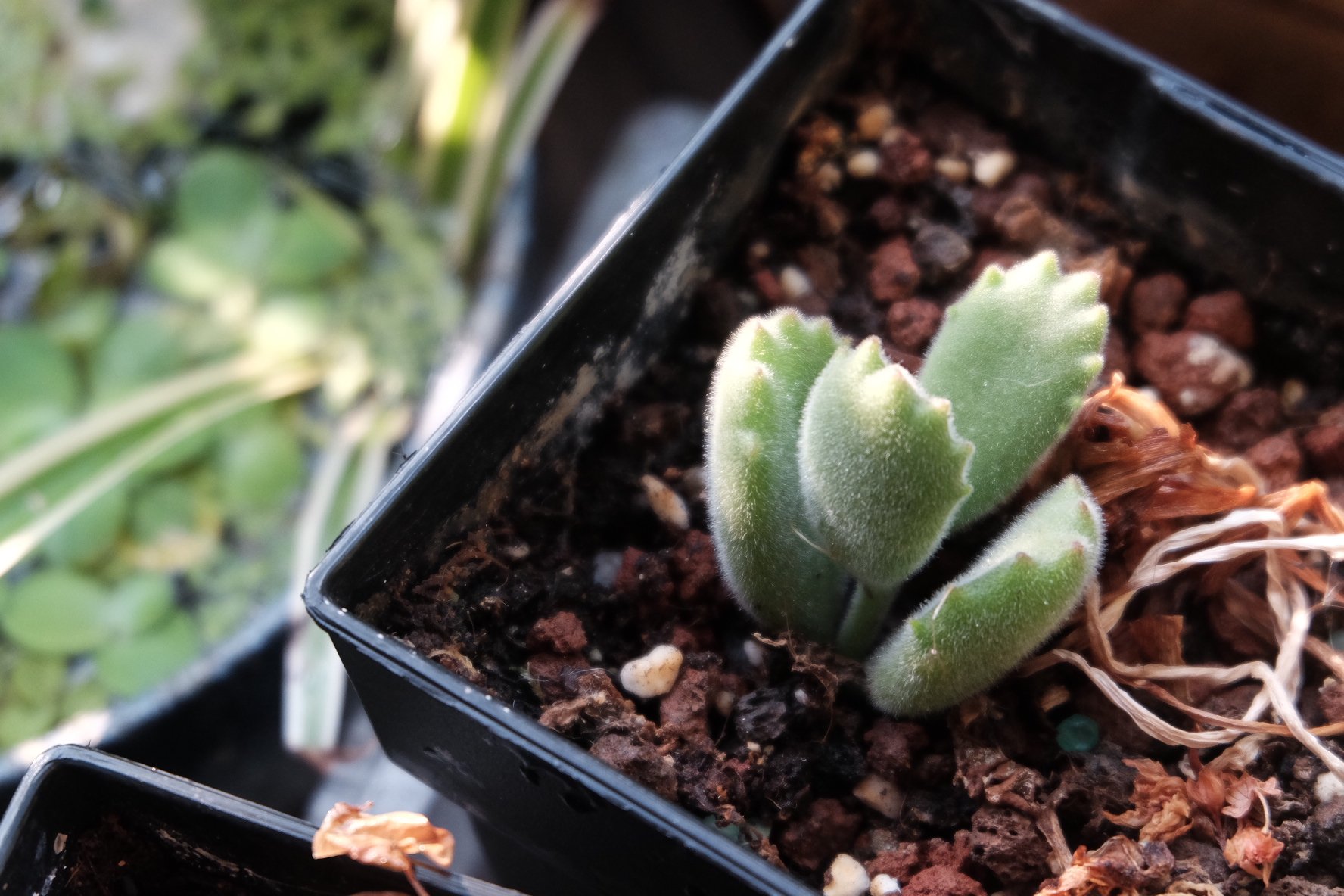 熊童子,叶片像肉乎乎的小爪子。多肉这两年在园艺界开始退流行了。家里的这点多肉还是三五年前陆陆续续留下来的“坚挺”的品种,平常也不怎么打理它,丢一片叶子下去,隔一两年就是一大丛。