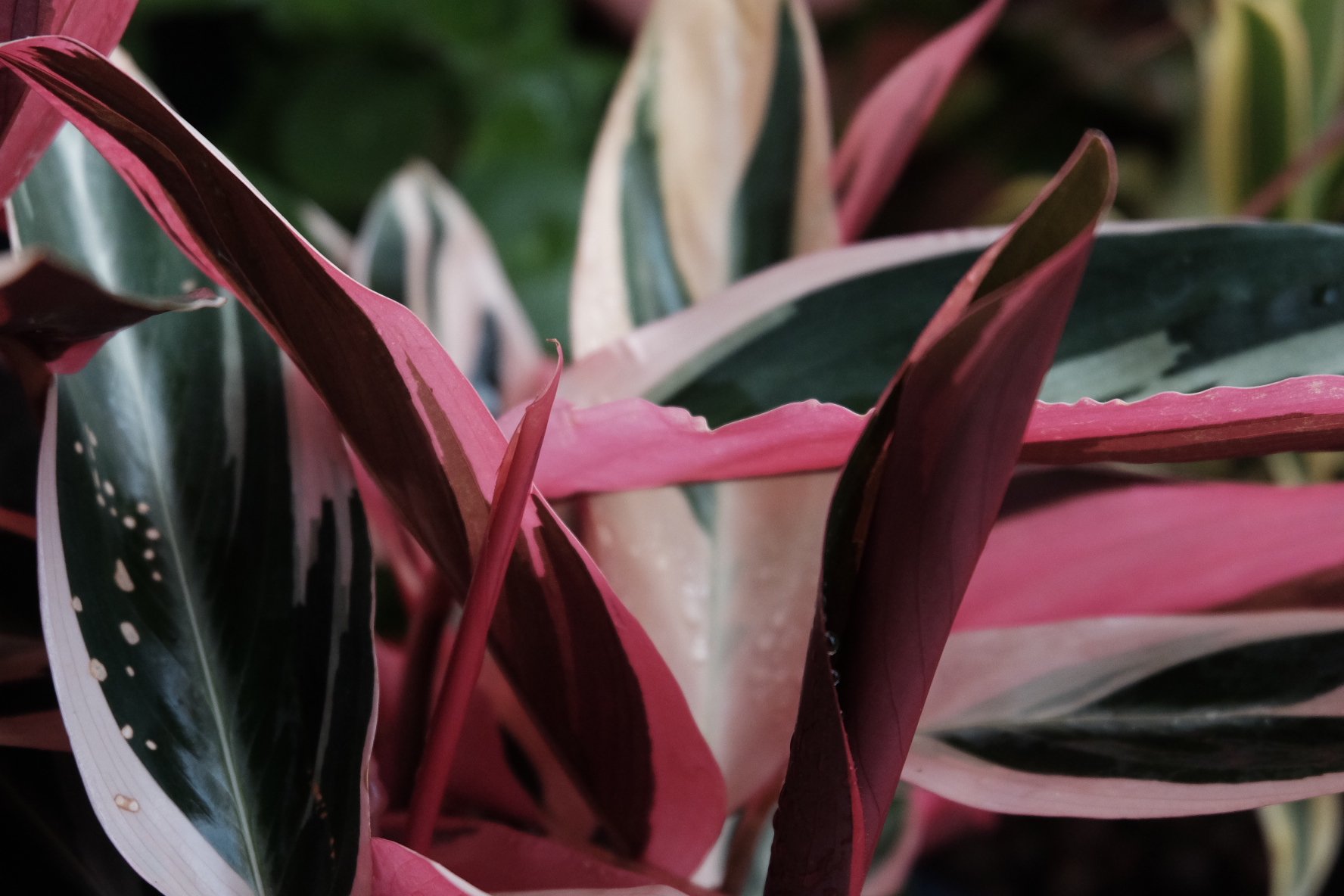巴西彩虹竹芋,竹芋类的品类比较复杂,既有商品名又有种属名,大家都在乱叫,确切的是什么,其实未必真的知道。我比较喜欢它这种渐粉色的色调,看过植物园里面把它养到开花的地步,但在我自己的培育环境中,只看到它的叶子越长越小。最初从广东卖家那边过来的几片30cm的大叶子萎掉之后,再也没有萌出过那么阔大的叶片了。看来,它也在努力适应“包邮区”的环境啊。
