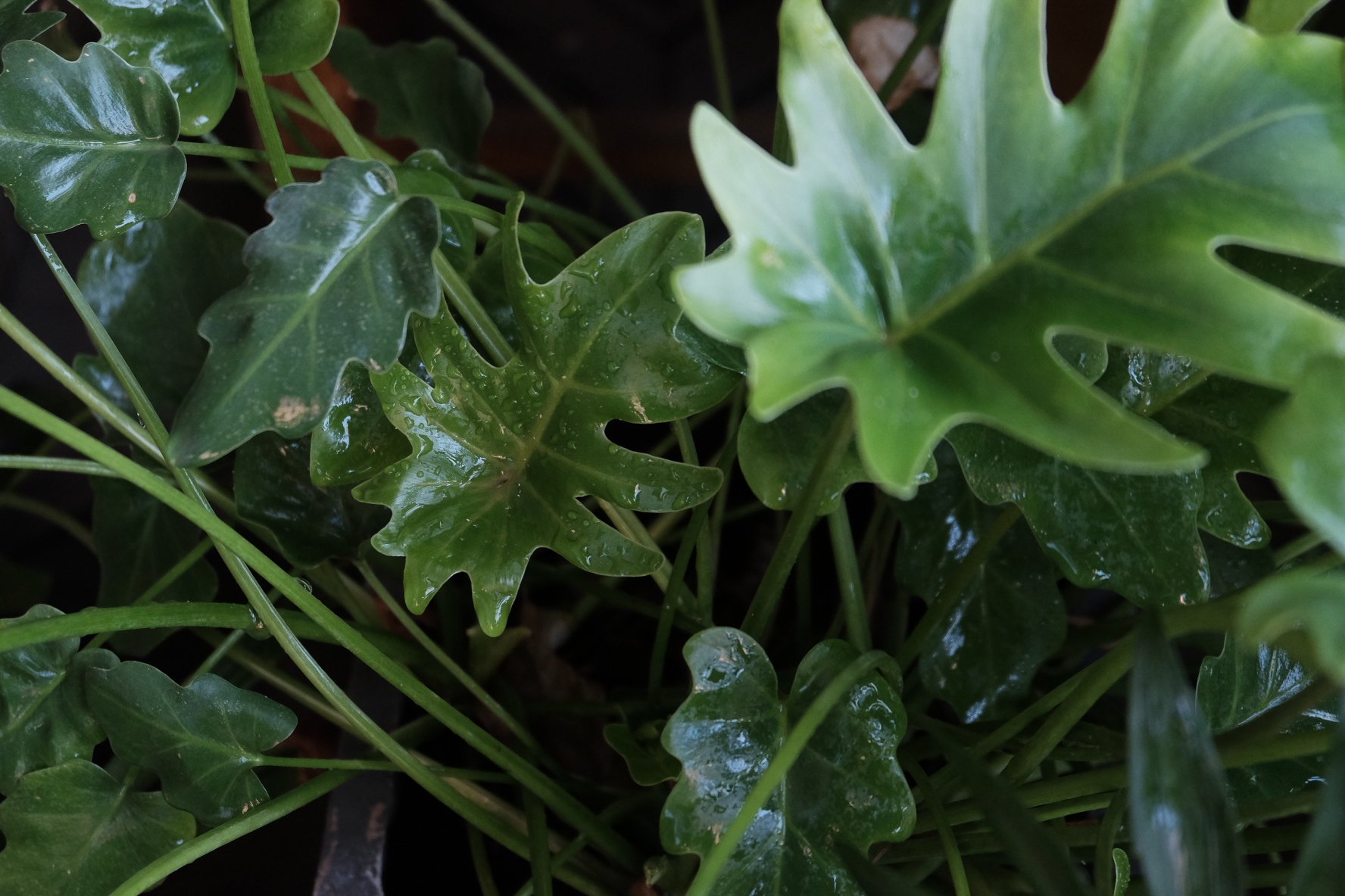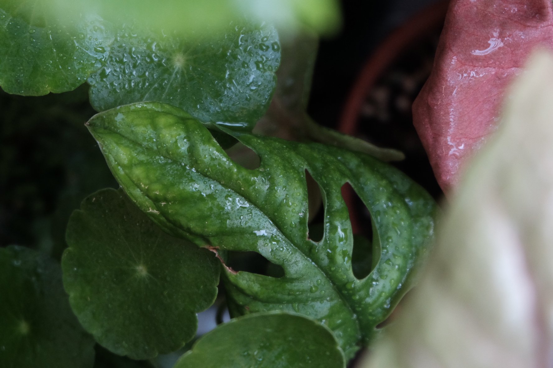 龙鳞根的小天使龟背,不过被我放在水泥盆里,埋得深,白瞎了盘得很特别的龙鳞根。它状态好的是每年六七八月,新叶子萌得快且密,油亮油亮的一层,平时都是特别稀疏的状态。