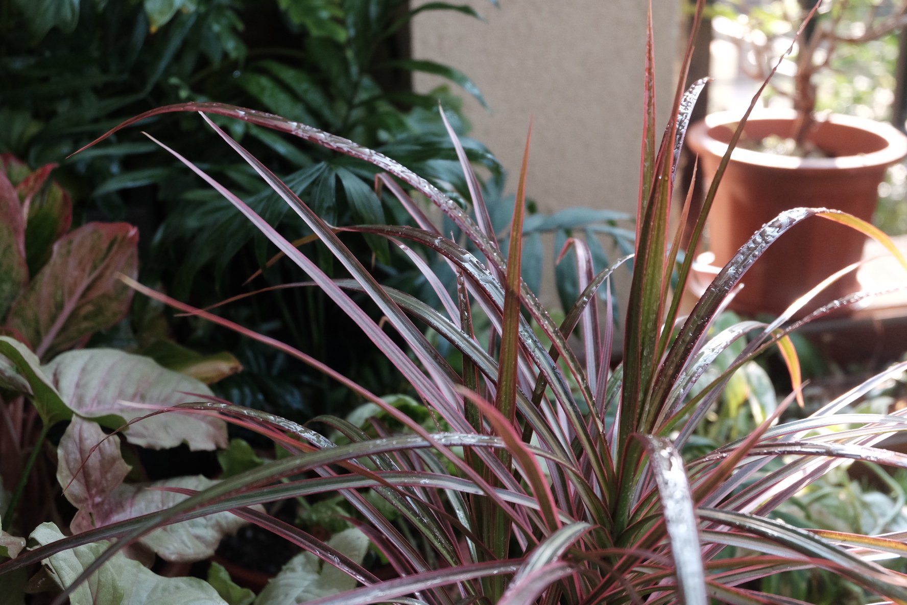 各式各样的叶型出现在了阳台的植物角,这样看其实挺乱的,但我还是喜欢把植物们都堆在一起。植物会利用各自的蒸腾效应,将身边的小气候改造成适合自己生长的环境,尤其是在保持湿度和预防虫害方面。